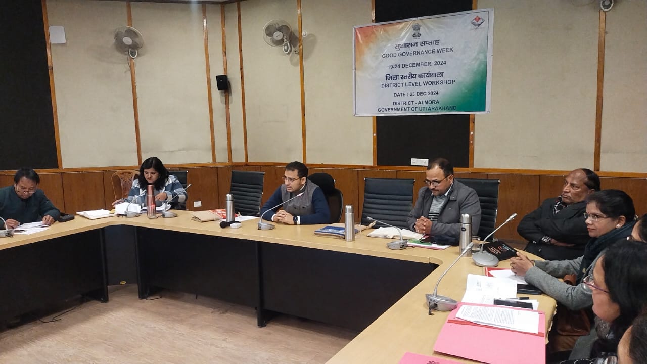 अल्मोड़ा, 23 दिसंबर 2024 सुशासन सप्ताह (19 से 24 दिसंबर 2024) के अंतर्गत आज विकासभवन सभागार में एक जिला स्तरीय कार्यशाला का आयोजन किया गया। इस कार्यशाला में जनपद के विभागीय अधिकारियों द्वारा प्रतिभाग किया गया तथा जनपद में सुशासन के मूल बहुत सिद्धांतों के तहत कार्य करने पर चर्चा की गई।
