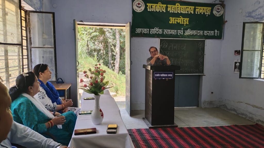 अल्मोड़ा आज दिनांक 9 सितम्बर  2024 को राजकीय महाविद्यालय लमगड़ा, अल्मोड़ा में शिक्षा शास्त्र विभाग की ओर से एक कार्यशाला  का आयोजन किया गया, गोष्ठी का प्रमुख विषय था तनाव प्रबंधन । कार्यक्रम का शुभारंभ अतिथियों का स्वागत कर किया गया | कार्यक्रम के संयोजक  हेमन्त कुमार बिनवाल, असिस्टेंट प्रोफेसर द्वारा कार्यशाला की रूपरेखा रखी गई |