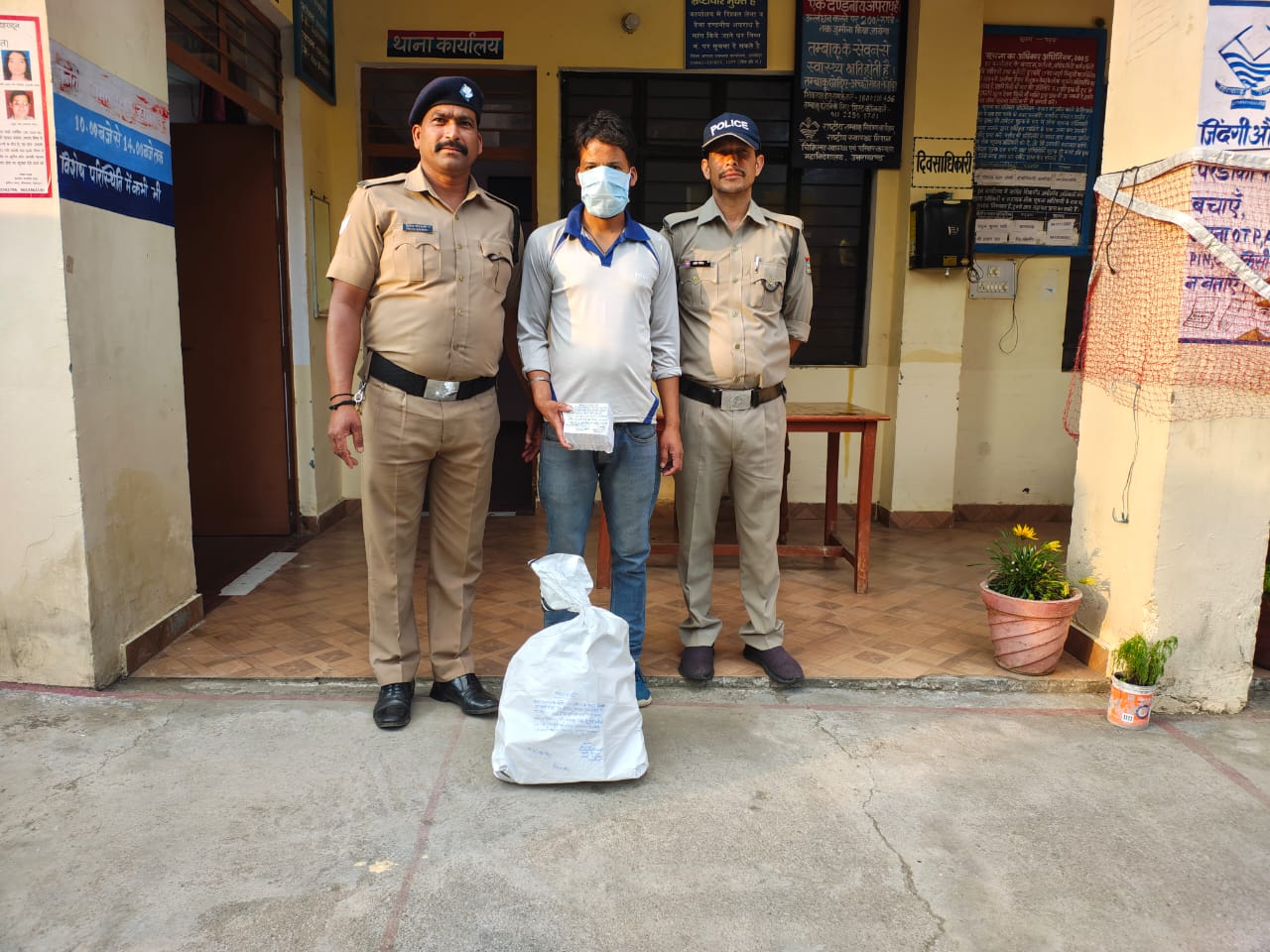 दिनांक 28/05/2025 को थानाध्यक्ष लमगड़ा राहुल राठी के नेतृत्व में पुलिस टीम द्वारा चेकिंग के दौरान जैती से ग्राम पिपली जाने वाले तिराहे के पास बने यात्री प्रतिक्षालय के पास अभियुक्त महेन्द्र सिंह उम्र 35 वर्ष पुत्र खड़क सिंह निवासी ग्राम खड़ियानौला पो0 रज्यूड़ा तह0 जैती थाना लमगड़ा जनपद अल्मोड़ा को 62 पाउच अंगूर मसालेदार अवैध देशी शराब के साथ गिरफ्तार कर थाना लमगड़ा में आबकारी अधिनियम के अन्तर्गत अभियोग पंजीकृत किया गया है।