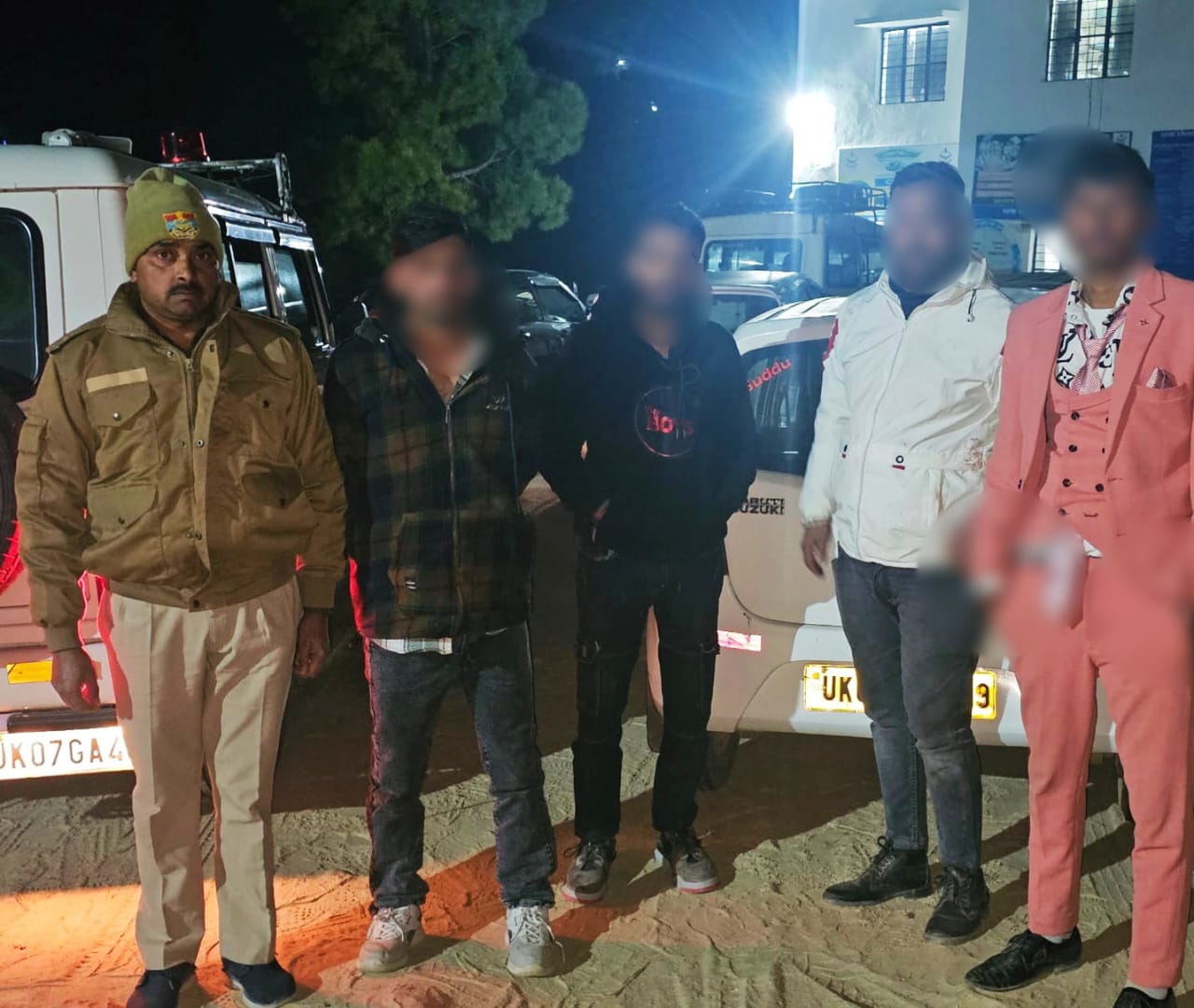 थानाध्यक्ष धौलछीना विजय नेगी के नेतृत्व में पुलिस टीम द्वारा चेकिंग अभियान चलाया जा रहा था,जमराड़ी बैण्ड के पास वाहन संख्या UK02TA1549 के चालक विष्णुदेवा निवासी उडयूड़ा बनकोट बेरीनाग पिथौरागढ़ नशे में वाहन चला रहा था और वाहन में सवार अन्य सुमित कुमार,हेम चन्द्र,हिमांशु कुमार निवासी उपरोक्त उडयूड़ा के साथ हुड़दंग मचा रहा था, चालक विष्णुदेवा को मोटर वाहन अधिनियम के तहत गिरफ्तार कर वाहन को सीज किया गया तथा कार मे सवार अन्य को उत्तराखंड पुलिस अधिनियम के तहत गिरफ्तार किया गया।