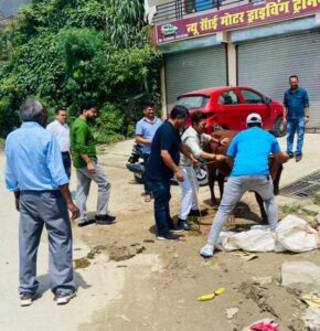 आवारा पशु का इलाज करते डॉ गर्बियाल साथ में सामाजिक कार्यकर्ता