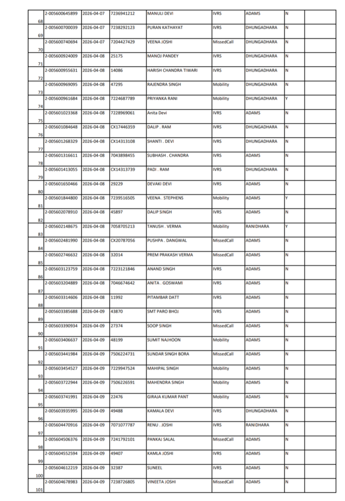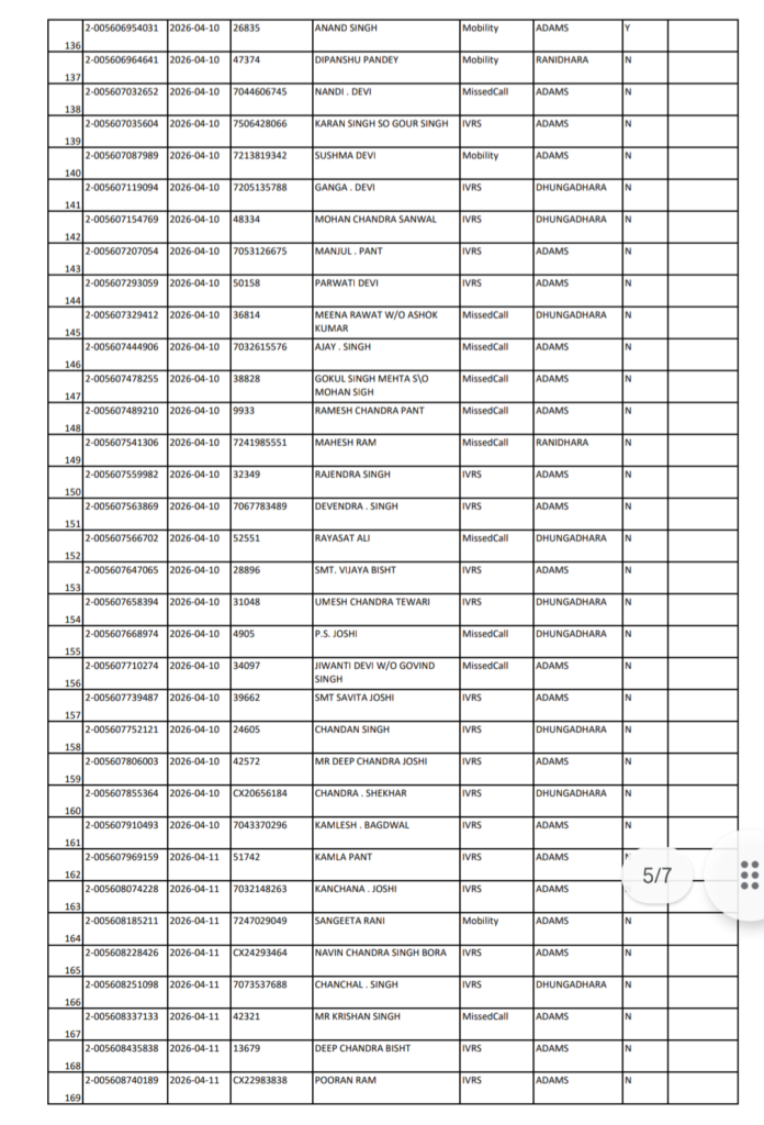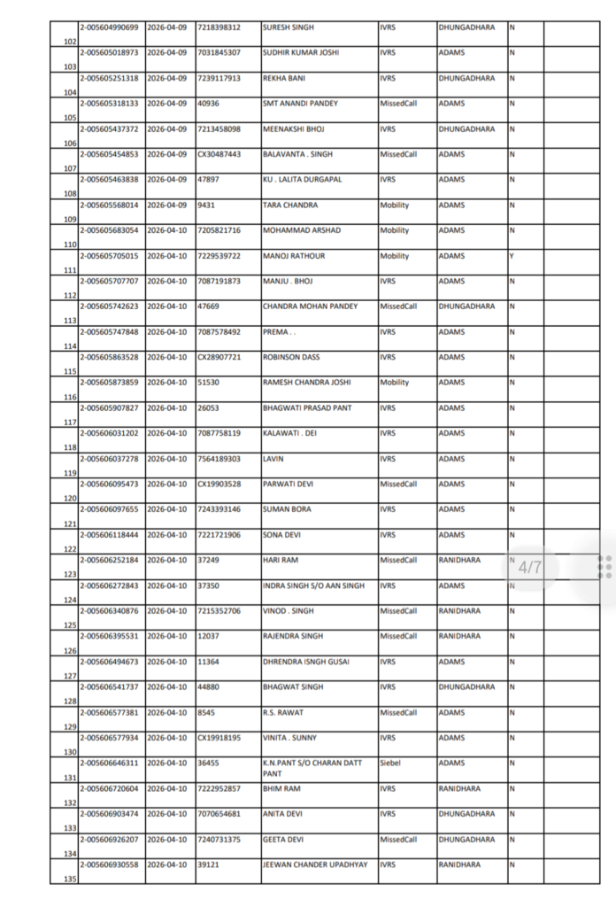 अल्मोड़ा शनिवार 18/04/2026 को एडम्स से होने वाली गैस वितरण की सूची जारी कर दी गई है। संबंधित अधिकारियों ने जानकारी देते हुए बताया कि केवल सूची में शामिल उपभोक्ताओं को ही गैस सिलेंडर उपलब्ध कराया जाएगा।
