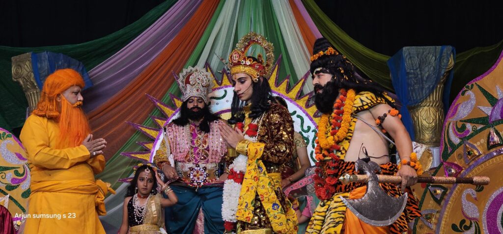 अल्मोड़ा -सांस्कृतिक नगरी अल्मोड़ा और कुमाऊं की सबसे प्राचीन और  एतिहासिक रामलीला श्री नंदादेवी रामलीला कमेटी द्वारा रामलीला मंचन के तृतीय दिवस में सीता स्वयंवर और परशुराम लक्ष्मण संवाद की प्रस्तुति दी गई। तृतीय दिवस की लीला के मुख्य अतिथि दशहरा महोत्सव समिति के अध्यक्ष अजीत सिंह कार्की और विशिष्ट अतिथि स्प्रिंग डेल्स सीनियर सेकेंडरी स्कूल के प्रबंधक विपुल कार्की, भारतीय जनता पार्टी जिला मंत्री देवाशीष नेगी,  राधा राजपूत, गीता पांडे और भगवती बिष्ट द्वारा किया गया। छोटे छोटे बच्चों द्वारा लीला प्रारम्भ होने से पूर्व सरस्वती वंदना का मंचन किया गया। सरस्वती का अभिनय जीविका पाठक द्वारा किया गया। सरस्वती वंदना और सीता सहेली में हर्षिता पांडे, काजल थापा, अंजलि थापा, कनिष्का पांडे, सृष्टि उप्रेती, कोमल कांडपाल और रितिका परगाई, काव्या कांडपाल ने अभिनय किया।इस अवसर पर कमेटी के अध्यक्ष कुलदीप सिंह मेर, परितोष जोशी, मोहन जोशी, लोकेश तिवारी, राजकुमार बिष्ट  द्वारा अतिथियों को राम प्रसादी भेट स्वरूप प्रदान की। संचालन कमेटी के निवर्तमान सभासद और रामलीला कमेटी के सचिव अर्जुन सिंह बिष्ट ने किया।