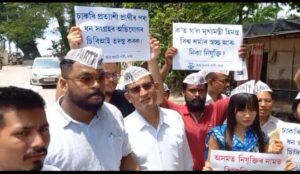 असम – की भाजपा नेता इंद्राणी तहबिलदार की आत्महत्या के मामला ने वाजपेयी भवन से नौकरियों का बड़ा काला बाजार चल रहे सभी सबूतों के खुलासे के बाद भी असम पुलिस आज तक इस घटना के मास्टरमाइंड को गिरफ्तार नहीं कर पाई है। जांच कर रही गुवाहाटी महानगर के पुलिस ने इस आत्महत्या की तस्वीर वायरल किये और नौकरी के बाजार में शामिल छोटे छोटे अपराधियों को गिरफ्तार करके बड़ा आरोपी तथा अपराधियों को छूट दिए जाने का आरोप लगाया है, आम आदमी पार्टी असम ने । आज पार्टी के सैकड़ों पदाधिकारियों ने घटना की सीबीआई जांच की मांग करते हुए महानगर में राजभवन के सामने विरोध प्रदर्शन किया और प्रदेश के राज्यपाल गोलाप चंद कटारिया को एक ज्ञापन सौंपा। आम आदमी पार्टी के प्रदेश अध्यक्ष भाबेन चौधरी के नेतृत्व में प्रदर्शनकारियों ने हाथों में बैनर और बंदनवार लेकर , ‘रोजगार के नाम पर भाजपा नेता का दलालराज बंद करो’ नौकरी चाहने वालों से धन एकत्र करने के आरोपों की सीबीआई जांच करे‘, भाजपा वापस जाओ’ आदि नारों के साथ प्रदर्शन स्थल पर हंगामा मचा दिया।