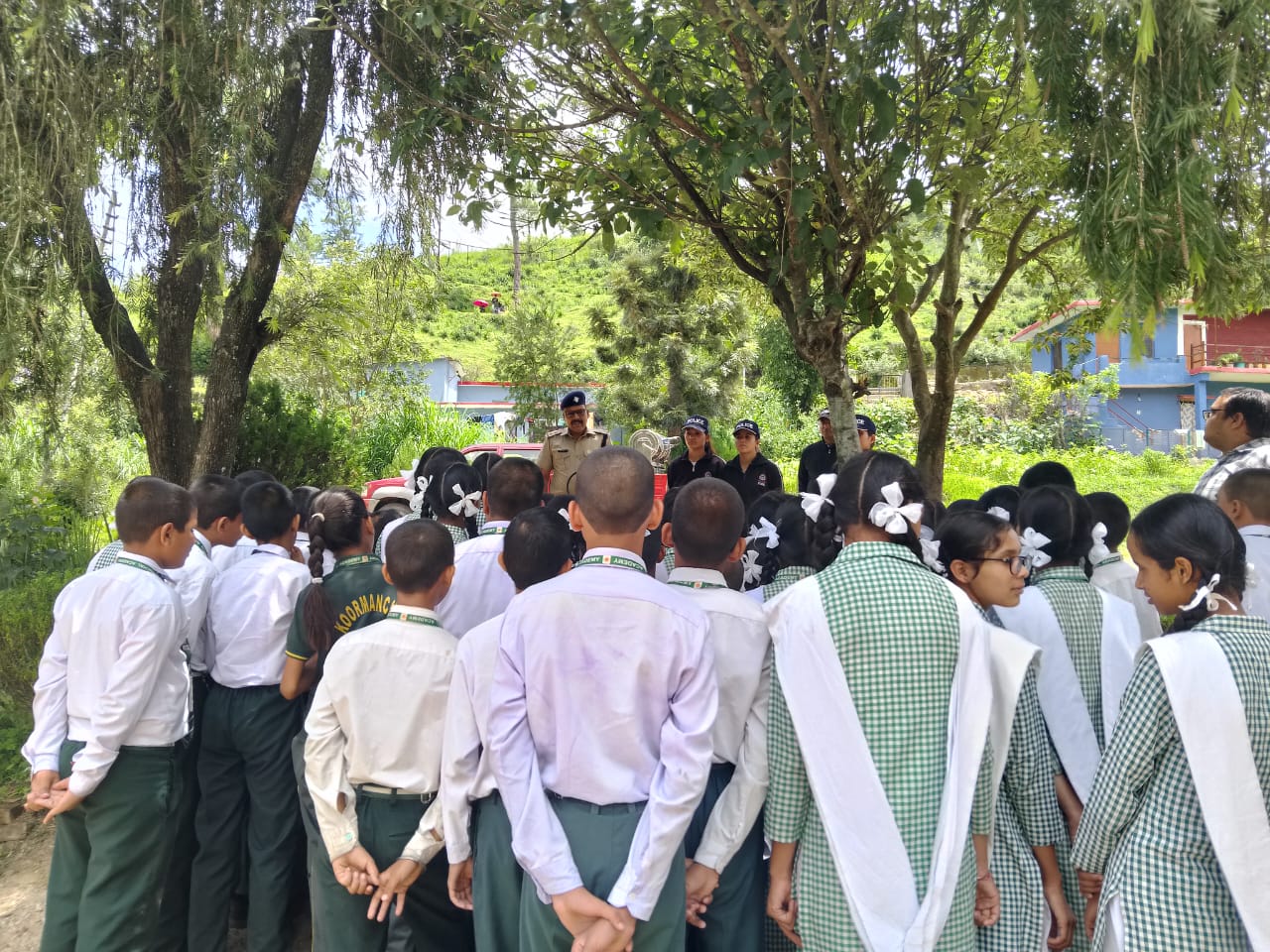 आज दिनांक 06.08.2024 को देवेन्द्र पींचा, वरिष्ठ पुलिस अधीक्षक अल्मोड़ा महोदय के निर्देशन में अग्निशमन अधिकारी महेश चंद्र द्वारा कूर्मांचल एकेडमी कोसी अल्मोड़ा में अग्नि सुरक्षा के दृष्टिकोण से जागरूक किया गया, व विद्यालय में उपस्थित अध्यापकों व छात्र-छात्राओं को प्राथमिक अग्निशमन उपकरणों के बारे में जानकारी दी गई व प्राथमिक अग्निशमन उपकरणों को संचालित करके डेमो दिया गया, व महत्वपूर्ण दिशा निर्देश दिए गए।