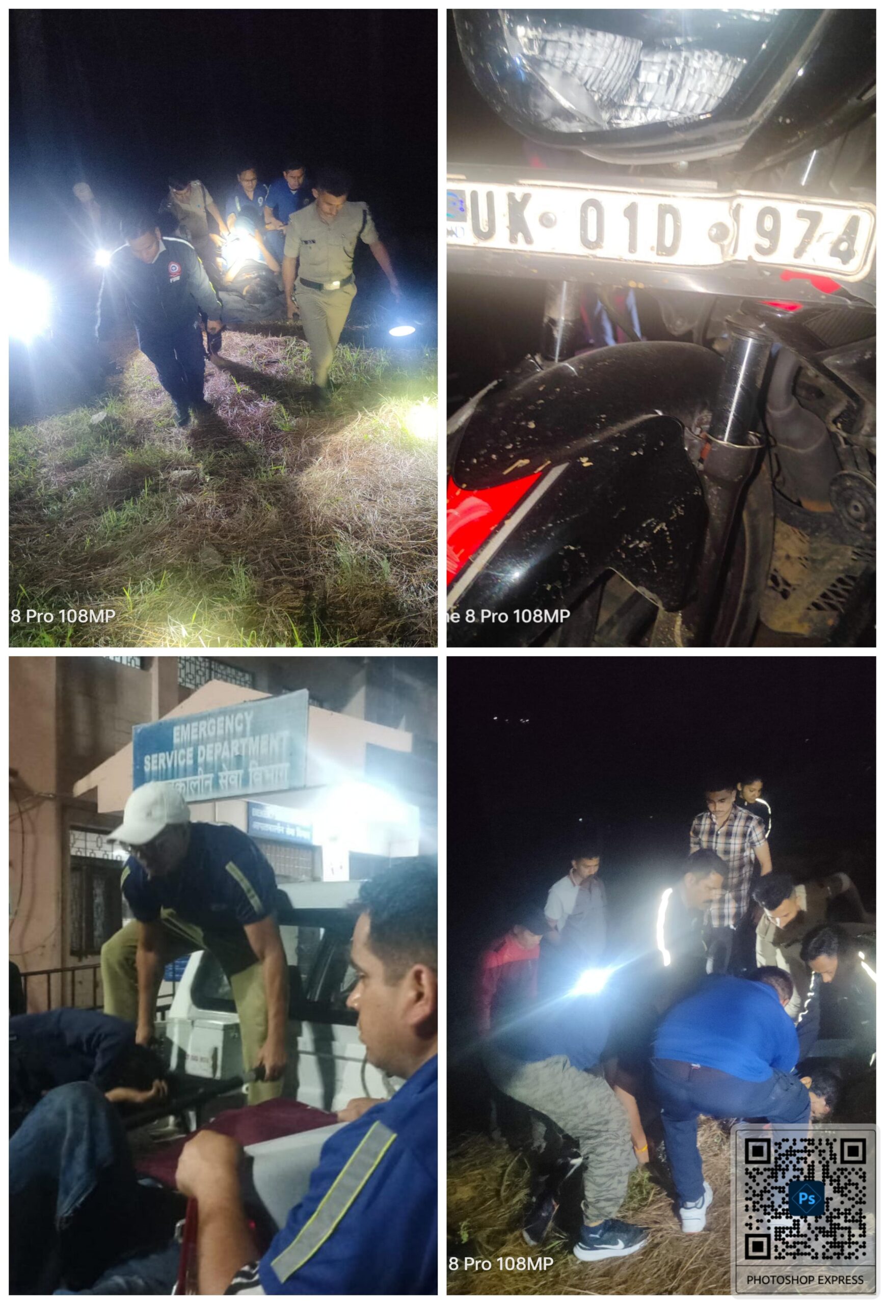 आज दिनांक 26.06.2024 को तड़के फायर स्टेशन अल्मोड़ा को सूचना मिली कि चितई से आगे कालीधार के पास एक वाहन (मोटर साइकिल) दुर्घटनाग्रस्त हुई है।