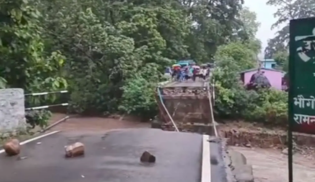 जनतानामा न्यूज़ अल्मोड़ा उत्तराखण्डजनतानामा न्यूज़ : पिछले एक दो दिनों से कुमाऊं में हो रही है लगातार बारिश के चलते जन जीवन अस्त-व्यस्त हो गया है। कई जगह सड़कों में मलबा आया है। वहीं नैनीताल जिले के रामनगर भतरौंजखान मोटर मार्ग पर सीमावर्ती पड़ाव के पास पन्याली गव्हरे पर बना पुल अचानक टूट गया है। बताया जा रहा है कि सालों पुराना यह पुल काफी ख़राब हो गया था। भारी बारिश के कारण अचानक बाढ़ आ गई। जिससे पुल का निचला हिस्सा टूट गया और पुल धंस गया। पुल तोड़ने से लोगों को काफी परेशानियों का सामना करना पड़ रहा है।