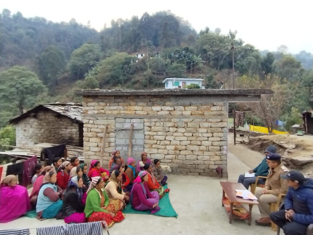जनतानामा न्यूज़ पिथौरागढ़ यहां प्राप्त जानकारी के अनुसार जनपद स्तर पर प्रचलित जन जागरुकता/ नशा मुक्ति अभियान के क्रम में आज दिनाँक- 13.01.2024 को प्रभारी निरीक्षक कोतवाली डीडीहाट, मोहन चन्द्र पाण्डेय के नेतृत्व में पुलिस टीम द्वारा ग्राम कानीखेत ग्रामसभा सिटोली में जाकर महिला मंगल दल के साथ गोष्ठी का आयोजन किया। गोष्टी में महिला अपराध व उनके समाधान एवं समाज में बढ़ते नशे की प्रवृत्ति को रोकने में महिलाओं की भागीदारी के महत्व को बताते हुए इस अभियान में पुलिस का सहयोग करने की अपील की गयी तथा सभी को नशे के विरुद्ध कार्यवाही, यातायात नियमों का पालन करने, साइबर अपराध से बचाव, महिलाओं/ नाबालिक बच्चों के साथ होने वाले अपराध व उत्तराखण्ड पुलिस एप/ गौरा शक्ति एप के बारे में विस्तृत जानकारी दी गई। इसके अतिरिक्त पुलिस इमरजेंसी सहायता नम्बर व अन्य महत्वपूर्ण नम्बरों के बारे में जानकारी दी गई। ग्रामीण क्षेत्रान्तर्गत चरस/ स्मैक/ शराब व अन्य अवैध मादक पदार्थों की बिक्री/ तस्करी करने वाले लोगों के सम्बंध में तुरंत पुलिस को सूचना देने की अपील की गई तथा उस पर उचित कार्यवाही करने व ग्रामीणों को हर सम्भव मदद प्रदान करने का आश्वासन दिया गया।