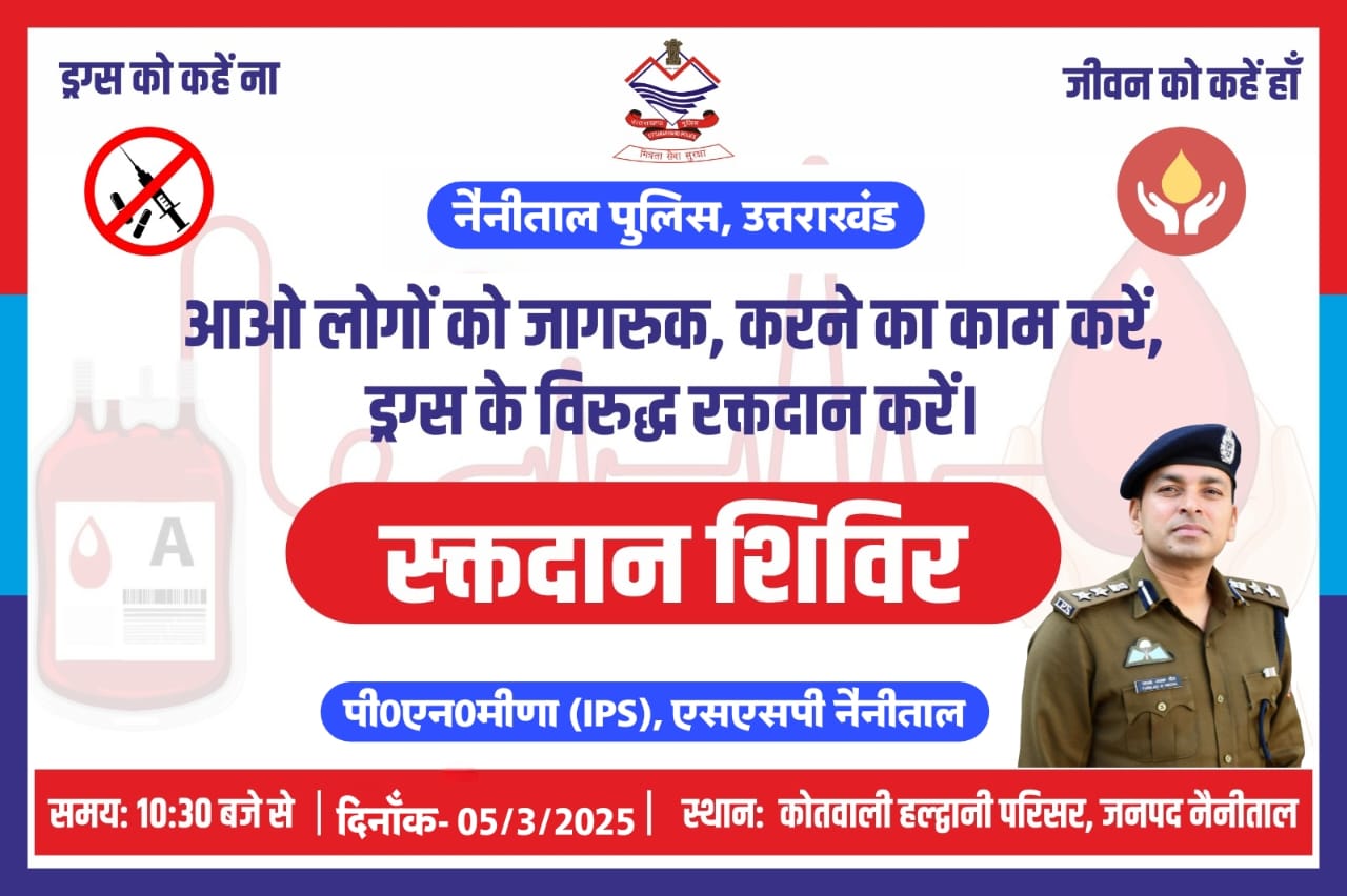 जनतानामा न्यूज़ अल्मोड़ा उत्तराखण्ड रक्तदान जीवनदायिनी है। एक बार रक्तदान करने से कई जिंदगियाँ बचाई जा सकती हैं। SSP NAINITAL…