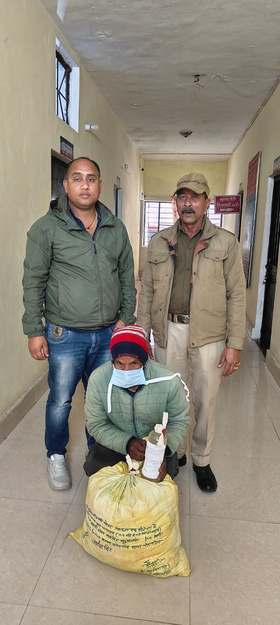 दिनांक 19-11- 2024 को थानाध्यक्ष चोरगलिया श्री राजेश जोशी के नेतृत्व में थाना पुलिस टीम द्वारा चेकिंग के दौरान चोरगलिया क्षेत्र उम्मेद राम पुत्र हयात राम निवासी नलई, थाना सितारगंज,जिला उधम सिंह नगर, उम्र 36 वर्ष के कब्जे से कुल 110 पाउच कच्ची शराब बरामद कर उक्त के विरुद्ध थाना चोरगलिया में धारा 60(1) आबकारी अधिनियम के अंतर्गत अभियोग पंजीकृत किया गया है।