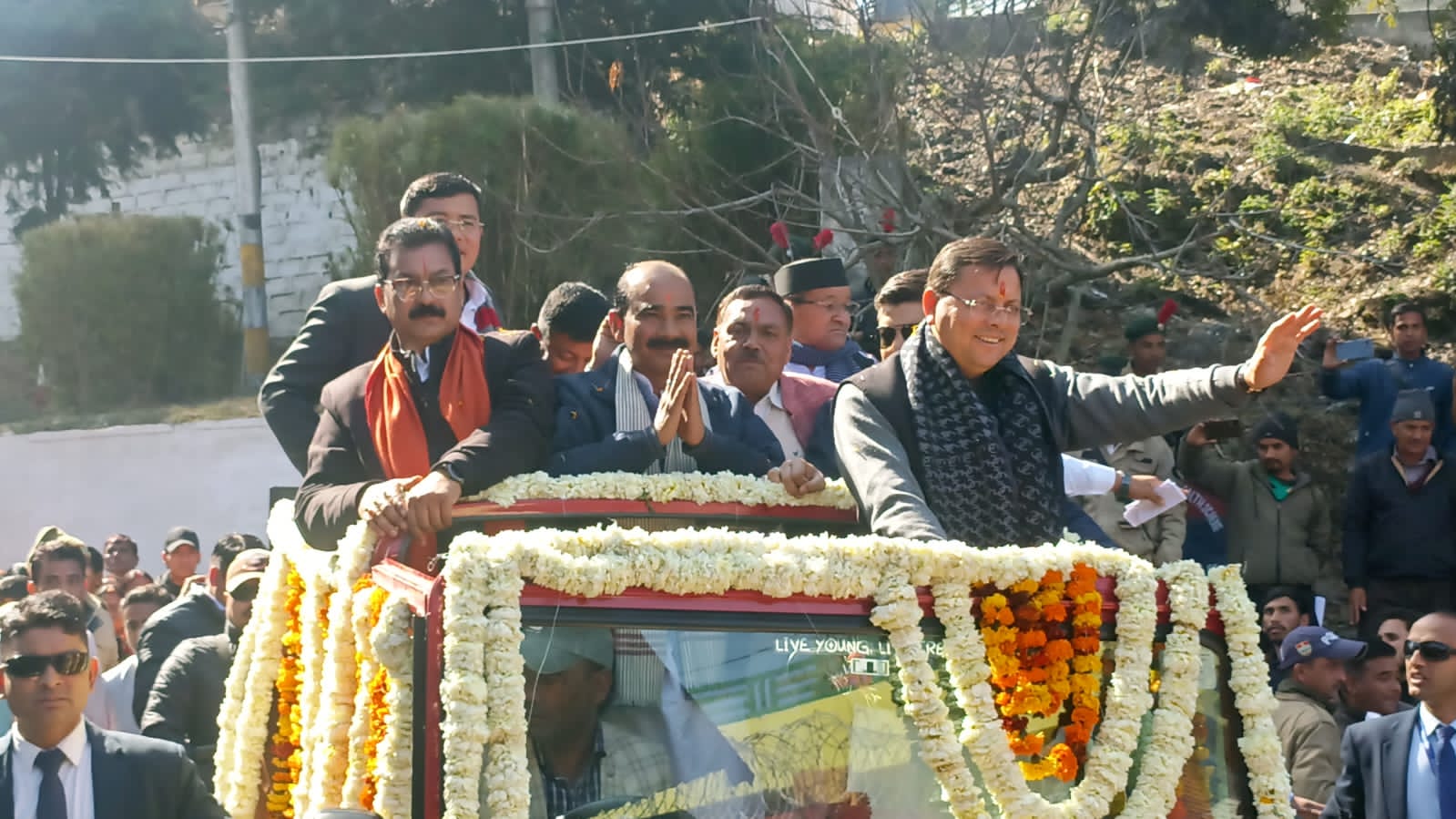 रोड़ शो के दौरान मुख्यमंत्री के साथ सांसद अजय टम्टा, विधायक कपकोट सुरेश गडियां, विधायक जागेश्वर मोहन सिंह मेहरा, प्रदेश उपाध्यक्ष भाजपा कैलाश शर्मा, जिलाध्यक्ष भाजपा रमेश बहुगुणा, जिलाध्यक्ष भाजपा रानीखेत लीला बिष्ट भी मौजूद रहे, राज्य मंत्री शिव सिंह बिष्ट समेत अन्य उपस्थित थे।