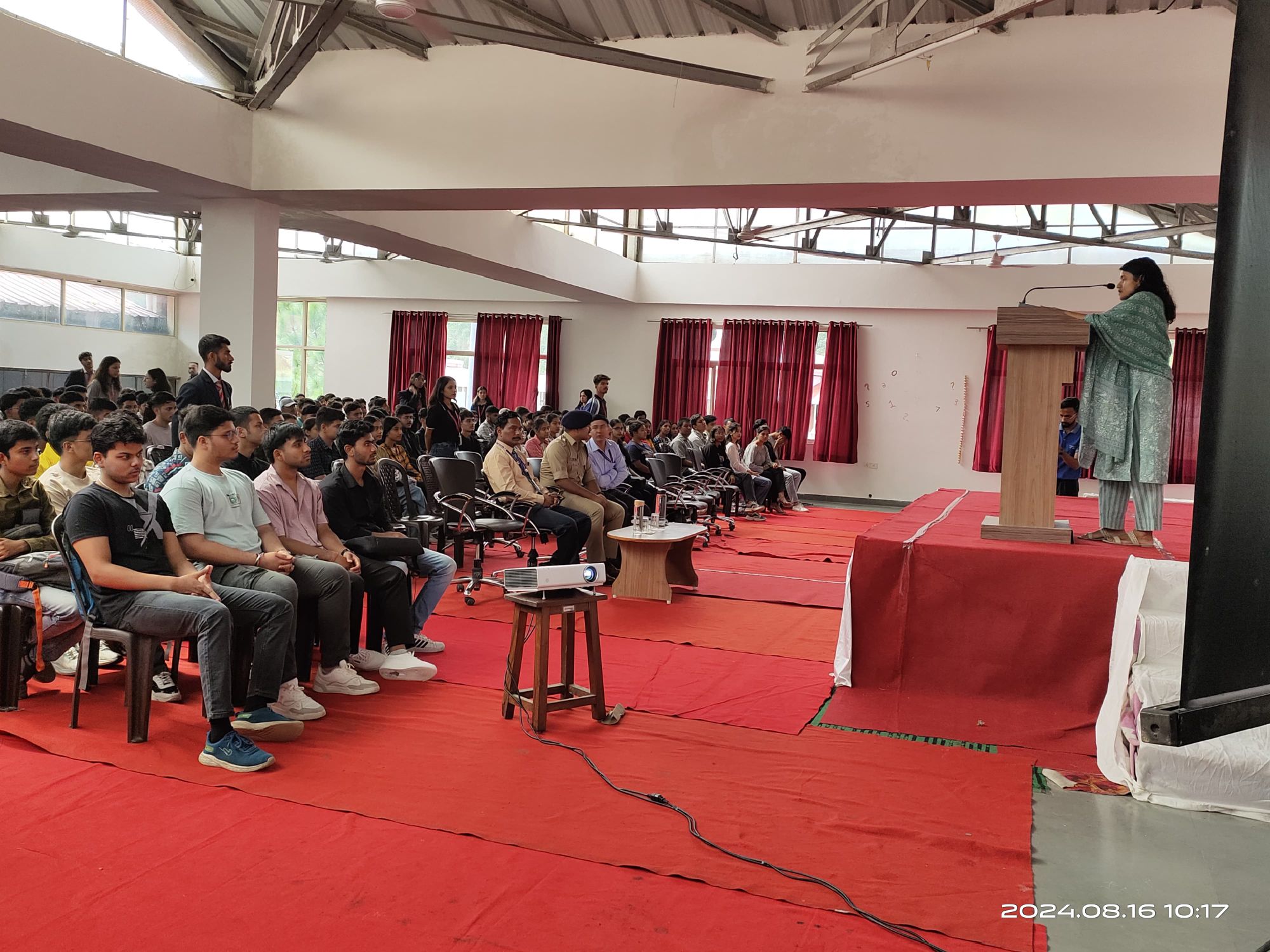 जागरूकता कार्यक्रम के दौरान लगभग 400 से अधिक स्टूडेंट और फैकल्टी टीम प्रो0 ए0के0 नैर (रिटायर्ड कर्नल) डारेक्टर, डॉ0 राजेंद्र बिष्ट असिस्टेंट प्रोफेसर, निधि जोशी असिस्टेंट प्रोफेसर, निशांत सुपरवाइजर ग्राफिक ऐरा मौजूद रहे।