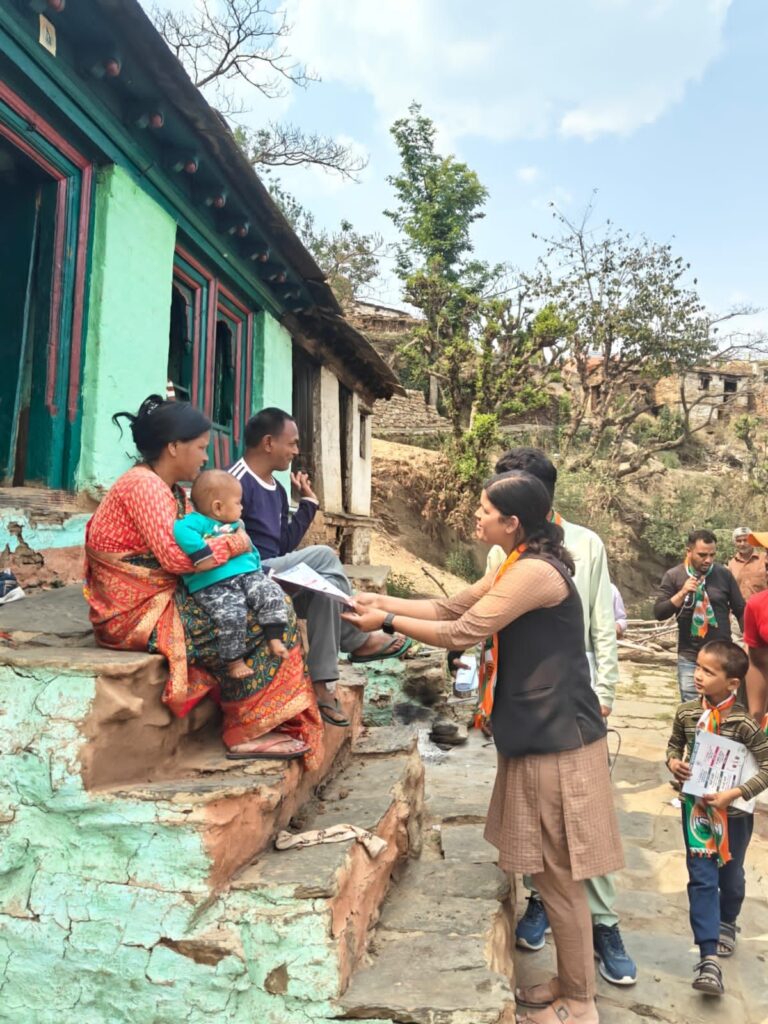 जिससे लोकतंत्र की हत्या हो रही है अग्निबीर जैसी योजना लागू कर पहाड़ के नौजवानों का सेना में जाने का रास्ता बन्द कर दिया है इसके साथ ही उन्होंने कहा कि दिन प्रतिदिन आधार कार्ड को अपडेट को लेकर नए नए नियम निकालकर देश की जनता को परेशान किया जा रहा है जिसका जबाब देश की जनता आने वाले लोकसभा चुनावों में अपने मत का उपयोग भाजपा के खिलाप करके देगी। इस अवसर पर पूर्व छात्रा संघ उपाध्यक्ष रुचि कुटोला, चन्दन भोज पूर्व प्रधान, हिमांशु विष्ट , पूर्व प्रधान ललित पंत , विक्रम विष्ट आदि उपस्थित थे।इधर एक अन्य टोली में महिला कांग्रेस कार्यक्रताओं ने मौहल्ला दरबारीनगर व एन टी डी में घर घर जाकर कांग्रेस प्रत्याशी प्रदीप टम्टा के पक्ष में मतदान की अपील की। इस अवसर पर रजनी टम्टा प्रदेश सचिव, शीतल टम्टा सरस्वती टम्टा , रंजना टम्टा, मीरा देवी, नेहा टम्टा, पूजा टम्टा, बीना टम्टा, जीवंती टम्टा आदि उपस्थित थी।