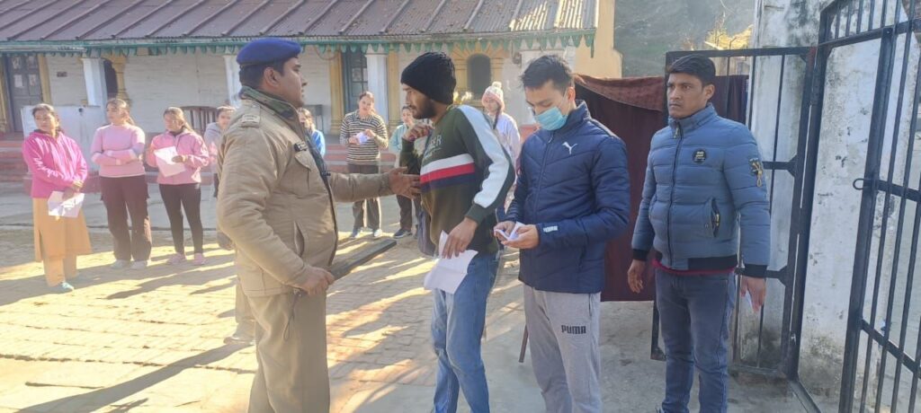 परीक्षा को सकुशल संपन्न कराने हेतु पुलिस बल अलर्ट मोड में परीक्षा केन्द्रों में अल्मोड़ा पुलिस द्वारा की जा रही है परीक्षार्थियों की सघन चेकिंग/फ्रिस्किंग