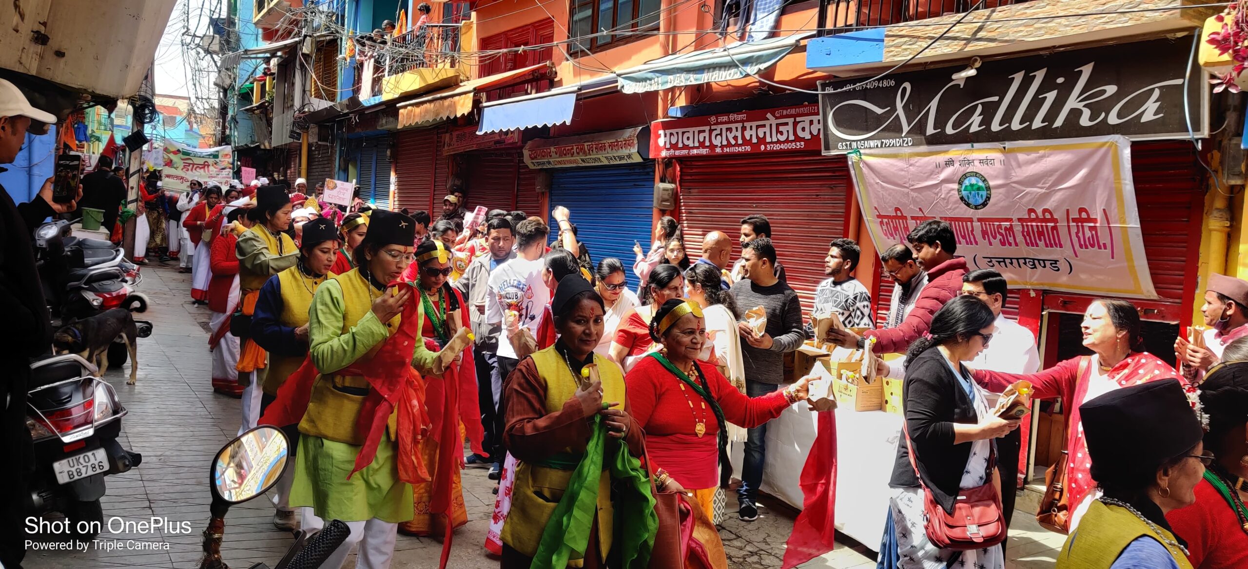 अल्मोड़ा देवभूमि उद्योग व्यापार मंडल अल्मोड़ा के पदाधिकारीयों द्वारा आज अल्मोड़ा के मुख्य बाजार में महिला कल्याण संस्था द्वारा निकाली गई महिला होलियारों की टीमों का जौहरी बाजार स्थित जिला महिला उपाध्यक्ष वंदना वर्मा के प्रतिष्ठान मलिका सूट के समक्ष जलपान की व्यवस्था की गई।