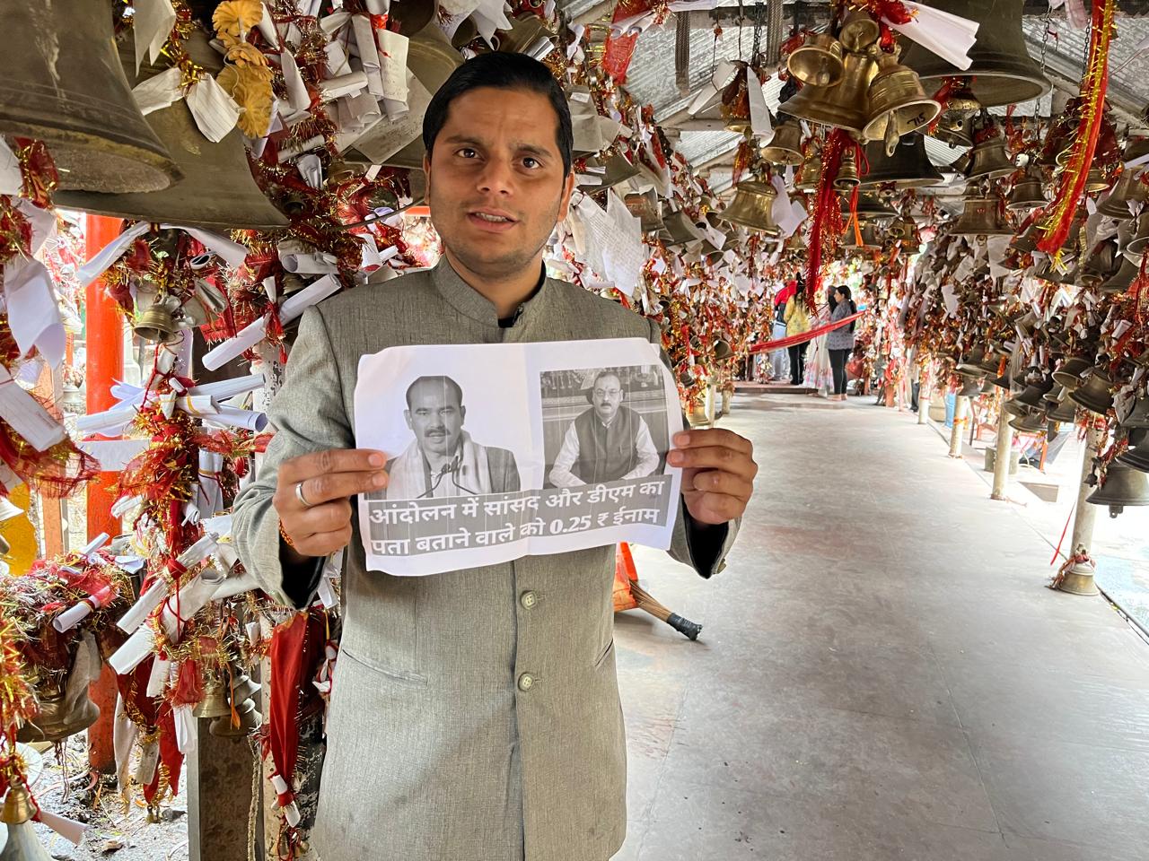 राष्ट्रनीति संगठन के तत्वाधान में एडवोकेट विनोद तिवारी के नेतृत्व में चल रहे हैं गांधी पार्क में आंदोलन को 41 दिन पूर्ण हो गए आज आंदोलनकारी जिला अधिकारी तथा स्थानीय सांसद अजय टम्टा और राज्य सरकार के खिलाफ अपील लेकर के न्याय के देवता गोलू देवता जी के मंदिर पहुंचे और उनसे इंसाफ करने की गुहार लगाई और कहा कि यदि ग्रामीणों की मांगे सही हैं तो सांसद और राज्य सरकार 2027 में तथा 2029 में जीत के ना आ पाए।