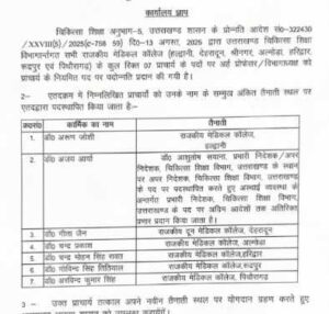 डॉ. अजय आर्य – अस्थायी रूप से प्रभार, अपर निदेशक चिकित्सा शिक्षा विभाग, उत्तराखंड