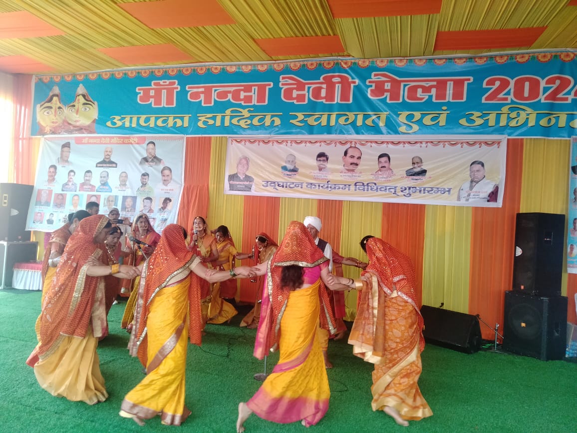 नन्दा देवी मेले को आयोजित हुए आज तीसरा दिन प्रारम्भ हो गया,इस बार खास प्रजा कि महिलाओं की टोली जगह जगह से झोडा, चांचरी के गाकर तैयार हो कर मां नन्दा देवी मेले में जोरदार, शानदार ,आगाज किया,झोडा , चांचरी कार्यक्रम के संयोजक हरीश कनवाल के नेतृत्व में यह आयोजन किया गया, समस्त ग्राम प्रधानो ने अपने अपने क्षेत्र की टीमो का झोडा, चांचरी टीमो का प्रदर्शन करवाया,, विनोद ग्राम प्रधान लाट , राजेंद्र बिष्ट ग्राम प्रधान माल हरीश रावत ग्राम प्रधान बरसिमी, राधा देवी, ग्राम प्रधान खत्याड़ी राजेंद्र बिष्ट, फलसिमा टीम लीडर किरन बिष्ट ग्राम सरसों,हिरा कनवाल , तल्ला खत्याड़ी के नेतृत्व में प्रस्तुति दी,,खास प्रजा से टोटल 7 टीमों ने भाग लिया,मुरली मनोहर थाना बाजार होते हुए सांस्कृतिक शोभा यात्रा में सज-धजकर, नाचते गाते हुए, मंदिर पहुंचा,,,, शोभा यात्रा का उद्घाटन जगदीश देउपा कोतवाल अल्मोड़ा व कुन्दन लाल मुरली मनोहर के दर्शन लाल शाह द्वारा किया गया, समस्त खास प्रजा की सभी टीमों को तैयार होने व साज सज्जा ए चाय पानी की व्यवस्था भी कुन्दन लाल शाह में कराया गया, तत्पश्चात इसके बाद शोभा यात्रा रवाना हुई,मंच पर पहले छोलिया नृत्य की कार्यक्रम कि शुरुआत कि ग ई, तत्पश्चात सभी टीमोंने अपनी अपनी परफॉर्मेंस दी,,, दृदि हाथों छोरी छै हखथो फुना,,त्वे कैले देछ,,सजन का फुना, ओर एक मशहूर चांचरी ,,दृवि गोरू त्वार छैना दृवि गोरू मेरा ,सगे चरुलो गोरू गाकर दर्शक दीर्घा को झुमने, नाचने को मजबूर कर दिया, पुरा मंदिर परिसर खचाखच भरा रहा, रंगकर्मी मशहूर झोडा चांचरी के जानकार नवीन बिष्ट जी व निर्णायक मंडली में जज रहे नारायण सिंह थापा, चन्दन सिंह नेनवाल रहे,झोडा , चांचरी टीमो के कम्पटीशन में प्रथम स्थान मात्र शक्ति खत्याड़ी ने प्राप्त किया, दुसरा स्थान सरसों गांव ने प्राप्त किया, तिसरा स्थान,कोट कल्याणयाडी खत्याड़ी, ने प्राप्त किया,कोकिला माल गांव अलावा मां भगवती फलसीमा , लाट गांव को सांत्वना पुरस्कार दिया गया,,इसी के साथ एक दिन पहले के डांस कॉम्पटीशन में टोप 4 जुनियर, वर्ग, सिनियर वर्ग कि फाइनल कॉम्पटीशन हूआ था, जिसमें फाइनल में , सिनियर वर्ग में प्रथम स्थान,रिदृका ने प्राप्त किया, दुसरा स्थान काव्या पांडे ने प्राप्त किया , तिसरा स्थान सोम्या सनवाल ने प्राप्त किया,चोथा स्थान प्रतिभा जोशी ने प्राप्त किया, जुनियर वर्ग में प्रथम स्थान कणिका पांडे, दुसरा स्थान सजना नेगी, तिहरा स्थान आस्था बिष्ट, चोथा स्थान भुमिका बगडवाल ने प्राप्त किया,बालक वर्ग में प्रथम स्थान श्याम, दुसरा स्थान प्रखर तिसरा स्थान सुमित कुमार, चोथा स्थान कमलेश ने प्राप्त किया, विद्यालयों के सांस्कृतिक प्रतियोगिता में 25 विद्यालयों ने रंगारंग कार्यक्रम प्रस्तुत किए, व