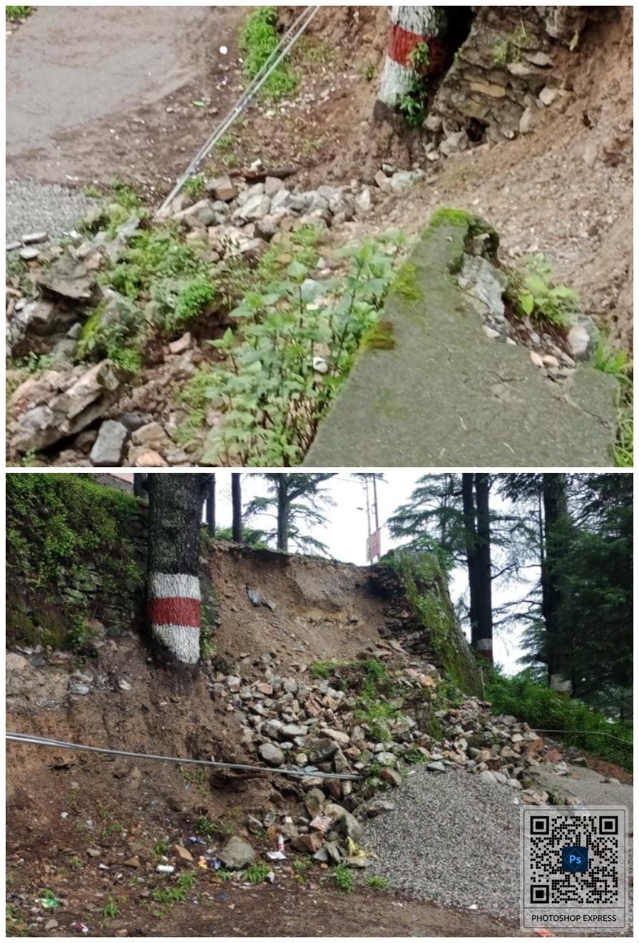 वहीं लगातार हो रही बारिश से धीरे धीरे सड़क के ऊपर की दीवार भी झुकनी शुरू हो गई है।