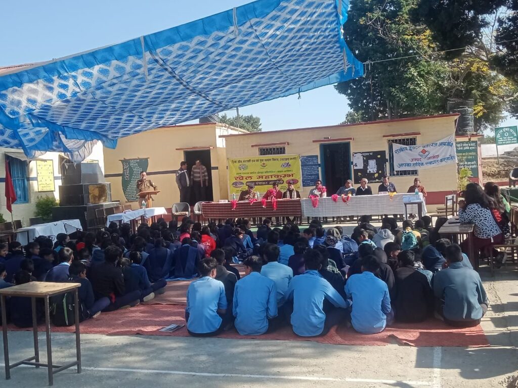 छात्र-छात्राओं को सड़क सुरक्षा, नशे के दुष्प्रभाव, साईबर क्राईम, हेल्पलाईन नंबरों सहित विभिन्न विषयों पर दी अहम जानकारी रामचन्द्र राजगुरु, वरिष्ठ पुलिस अधीक्षक अल्मोड़ा द्वारा जनजागरुकता अभियान के तहत सभी थाना प्रभारियों को अपने-अपने क्षेत्र में जागरुकता कार्यक्रम आयोजित कर स्कूली छात्र/छात्राओं व आमजन को अपराधों एवं सुरक्षा के सम्बन्ध में जागरुक किये जाने हेतु निर्देशित किया गया है। आज दिनांक- 18.12.2023 को प्रभारी निरीक्षक थाना द्वाराहाट श्री राजेश कुमार यादव द्वारा राजकीय इंटर कॉलेज असगोली, द्वाराहाट में अध्ययनरत छात्र-छात्राओं को सड़क सुरक्षा के प्रति सजग करते हुए यातायात नियमों की जानकारी दी गयी तथा नाबालिग बच्चों को बालिग होने तक वाहन नही चलाने हेतु बताया गया। नशे के दुष्प्रभावों के बारे में बताते हुए नशे से दूर रहने तथा गांव और आस-पास नशे से सम्बंधित सामान बेचने वालों की सूचना पुलिस को देने हेतु बताया गया। जागरुकता कार्यक्रम में छात्र/छात्राओं को साइबर अपराधियों द्वारा ठगी हेतु अपनाये जा रहे विभिन्न तरीकों व बचाव के उपाय बताए गए और इस जानकारी को अपने परिजनों व परिचितों से साझा करने हेतु प्रेरित किया गया। ग्रामीण क्षेत्र में संदिग्ध व्यक्ति दिखाई देने व बिना सत्यापन फेरी आदि का कार्य करने वाले व्यक्तियों की सूचना थाना पुलिस को देने हेतु बताया गया।