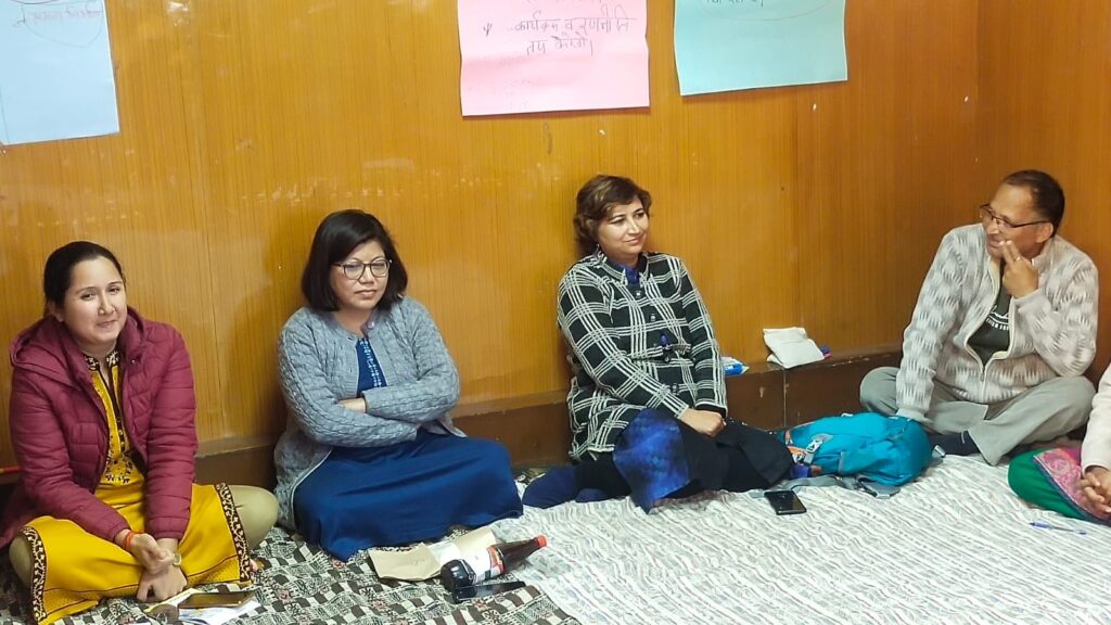 प्रशिक्षण के दौरान प्रशिक्षक कविता बडौला और नीलिमा भट्ट ने विभिन्न सत्रों में महिलाओं को प्रशिक्षण दिया। साथ ही सामुहिक परिचर्चा के अलावा ग्रुप चर्चाओं के माध्यम से भविष्य के लिए ऐसी योजनाए बनाने को कहा जो सतत रूप से कार्य कर सकें। इस दौरान महिलाओं ने अपने संस्मरण भी सुनाए और बीते 5 सालों में निगरानी समिति, सीएफसी कार्य और अन्य सामुहिक प्रयासों से हासिल अनुभवों और परिणामों को प्रशिक्षण सत्रों में सुनाया। इस मौके पर संस्था से जुड़ी शशि, जगदीश राम, धर्मा नेगी के अतिरिक्त कार्य क्षेत्र के 10 गांवों से आई 30 महिला संगठन प्रतिनिधियों ने प्रतिभाग किया।