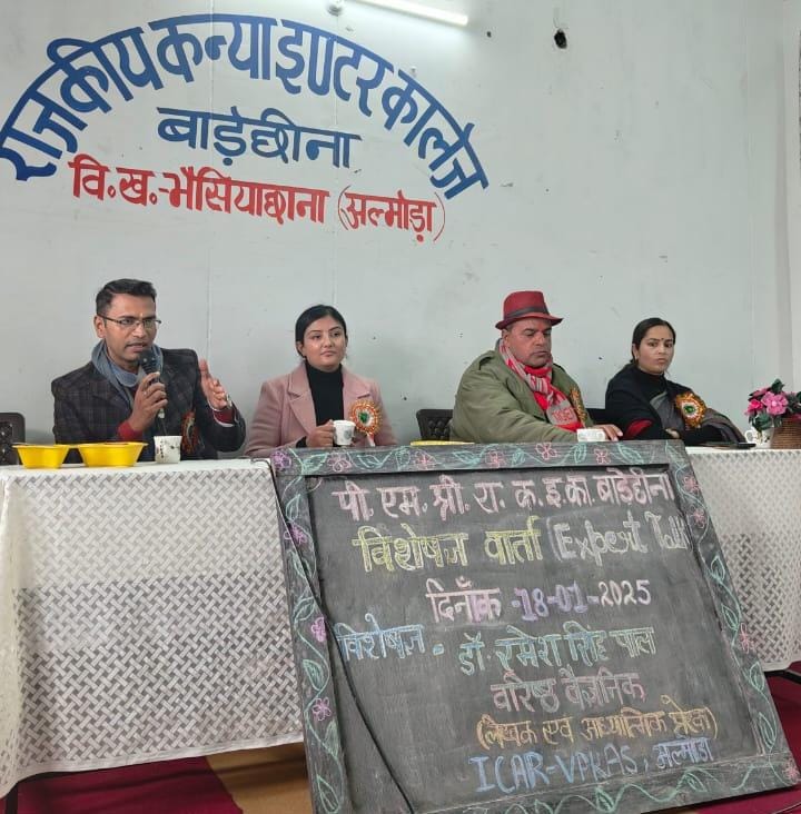 अल्मोड़ा यहाँ पीएम श्री राजकीय कन्या इंटर कॉलेज बाड़ेछीना में विशेषज्ञ वार्ता यानी एक्सपर्ट टॉक का आयोजन किया गया। इस अवसर पर मुख्य वक्ता के रूप में विवेकानंद पर्वतीय कृषि अनुसंधान संस्थान हवालबाग के वरिष्ठ वैज्ञानिक एवं आध्यात्मिक प्रेरक डॉक्टर रमेश सिंह पाल तथा कुमारी दिव्यांशी नयाल उपस्थित थी।