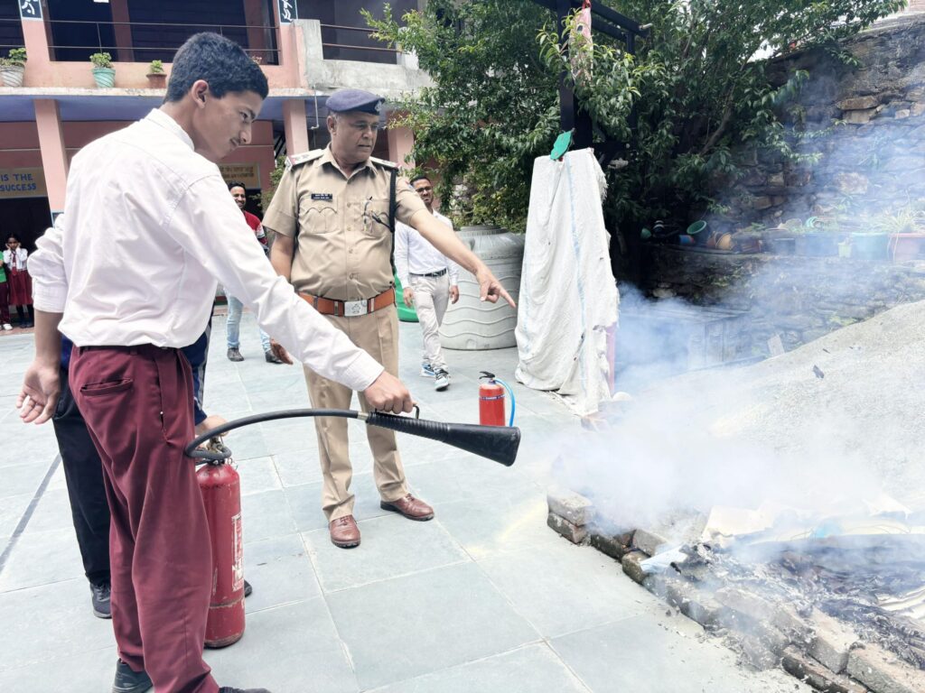 आज दिनांक 23.05.2025 को अग्निशमन अधिकारी अल्मोड़ा महेश चन्द्र के नेतृत्व में फायर सर्विस यूनिट द्वारा न्यू मॉडर्न पब्लिक स्कूल नियर बेस हॉस्पिटल अल्मोड़ा में उपस्थित छात्र-छात्राओं एवं समस्त स्टाफ को जागरूक किया गया। लीडिंग फायरमैन लक्ष्मण सिंह द्वारा आग के प्रकार तथा उसके बचाव की जानकारी दी गई एवं महिला फायरमैन लीला बिष्ट द्वारा प्राथमिक अग्निशमन उपकरणों के संचालन की जानकारी दी गई।