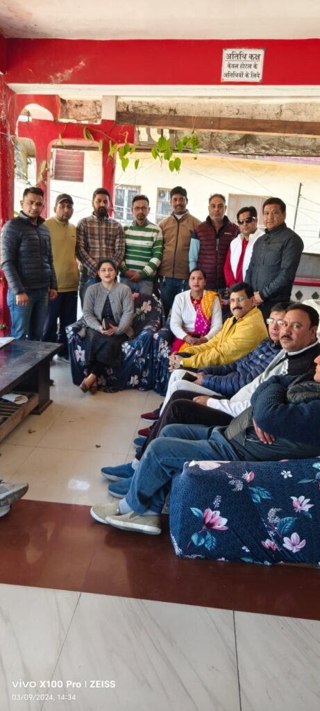 बैठक में देवभूमि उद्योग व्यापार मंडल अल्मोड़ा जिला अध्यक्ष मनोज सिंह पवार, नगर अध्यक्ष संजय साह ‘रिक्खू’, प्रदेश उपाध्यक्ष मनोज वर्मा, वरिष्ठ व्यापारी व पूर्व व्यापार मंडल अध्यक्ष दिनेश गोयल, जिला प्रभारी युसूफ तिवारी, जिला कार्यकारी अध्यक्ष प्रमोद पवार ‘भीमा’, जिला महामंत्री हिमांशु कांडपाल, नगर महासचिव दीप चंद्र जोशी, जिला महिला उपाध्यक्ष वंदना वर्मा, नगर महिला उपाध्यक्ष मनु गुप्ता, जिला उपाध्यक्ष हिमांशु बिष्ट, नगर उपाध्यक्ष दीपक जोशी, आनंद सिंह भोज, जिला संयुक्त महामंत्री कमल बिष्ट, जिला संगठन मंत्री नीरज थापा ‘बिट्टू’, जिला कोषाध्यक्ष गणेश जोशी ‘गुड्डू’, नगर कोषाध्यक्ष रोहित साह, जिला मंत्री दिनेश कांडपाल, दीपक बिष्ट, दीपक नायक, नगर उपसचिव जयप्रकाश पांडे, अमन टकवाल, मनीष मल्होत्रा, सुधीर गुप्ता, राजू कुमार, जिला प्रचार मंत्री दिक्षित जोशी मौजूद रहे।