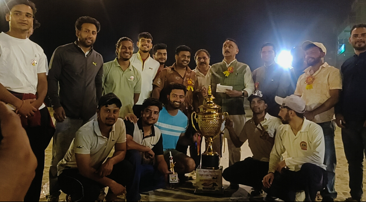 गिरीश धवन द्वारा किया गया।फाइनल मुकाबले में *शैली सेवन की टीम ने ब्लू बर्डस की टीम को 29 रनों से हराकर जीत दर्ज की।शैली सेवन की टीम ने दस ओवर में एक विकेट खोकर अस्सी रन बनाए।वहीं ब्लू बर्डस की टीम मात्र एक्यावन रन बनाकर आउट हो गयी*,और शैली सेवन ने 29 रनों से इस फ़ाइल मैच को जीत लिया।फाइनल मैच के मुख्य अतिथि *पूर्व दर्जा मंत्री बिट्टू कर्नाटक ने अपने संबोधन में युवाओं से अनुशासन में रहने की अपील की साथ ही उन्होंने उत्तराखंड के युवाओं से एवं समस्त खिलाड़ियों से नशे से दूर रहने का संकल्प लेने को कहा। उन्होंने कहा कि यदि अपने जीवन में किसी लक्ष्य को हासिल करना है तो हमारे युवाओं को नशे से दूर रहना होगा और खेलों में युवाओं को आगे बढ़ाने एवं समाज को नई दिशा देने के लिए हमें नशा मुक्त समाज बनाना होगा ।इस मौके पर उनके साथ विशिष्ट अतिथि के रूप में विनोद तिवारी,रोहित शैली, भुवन तिवारी,नितिन गुप्ता,आबिद अली,अर्जुन बिष्ट,क्लब के सौरभ वर्मा, कुणाल शैली,करण शैली,राजीव शैली आदि उपस्थित थे।मैन आफ दि सिरीज़ और बेस्ट बैट्समैन लोकेश रावत रहे।बेस्ट बालर कुनाल शर्मा, बेस्ट फील्डर भानु शर्मा रहे।मैन आफ दि मैच करन शैली रहे। कार्यक्रम में आयोजक मंडल से सौरभ वर्मा,रक्षित तिवारी,राजीव शैली,गौरव शैली, अभिषेक,करन शैली,कुनाल शैली रहे तथा संरक्षक भुवन तिवारी उपस्थित रहे।श्री कर्नाटक के साथ सुधीर कुमार, हेम चन्द्र जोशी, रोहित शैली, विनोद तिवारी,हसन,नूर खान,भुवन तिवारी,टीटू पन्त, गोविन्द,पप्पू आदि सम्मानित जन उपस्थित रहे।
