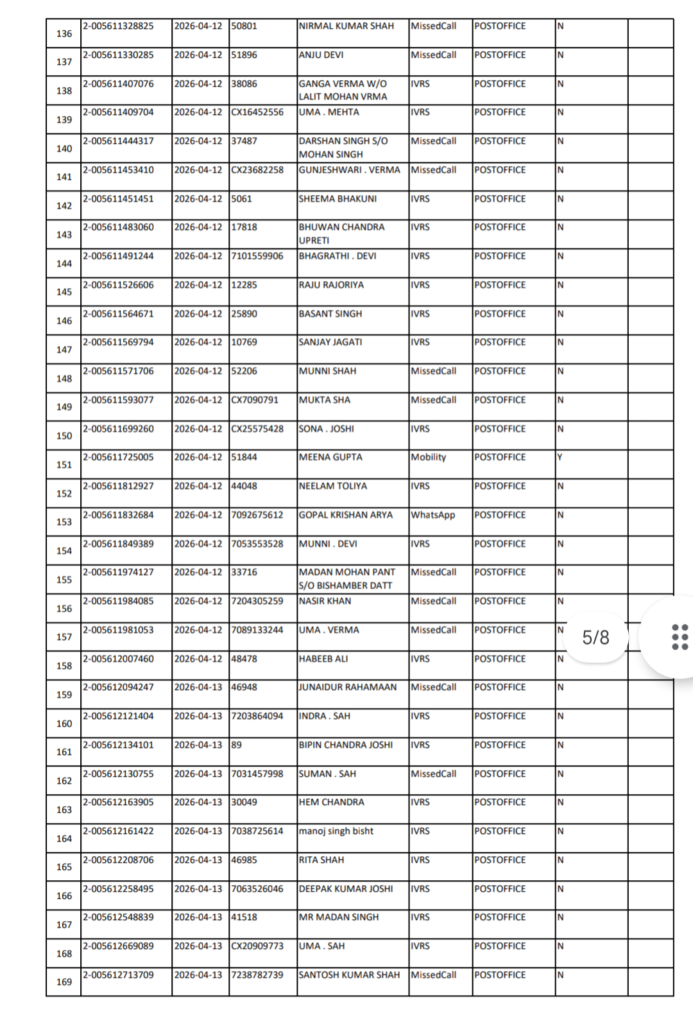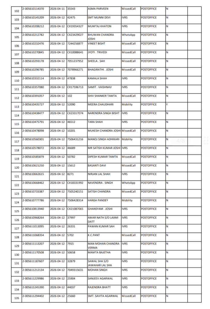 अल्मोड़ा मंगलवार 21/04/2026 को पोस्ट ऑफिस से होने वाली गैस वितरण की सूची जारी कर दी गई है।