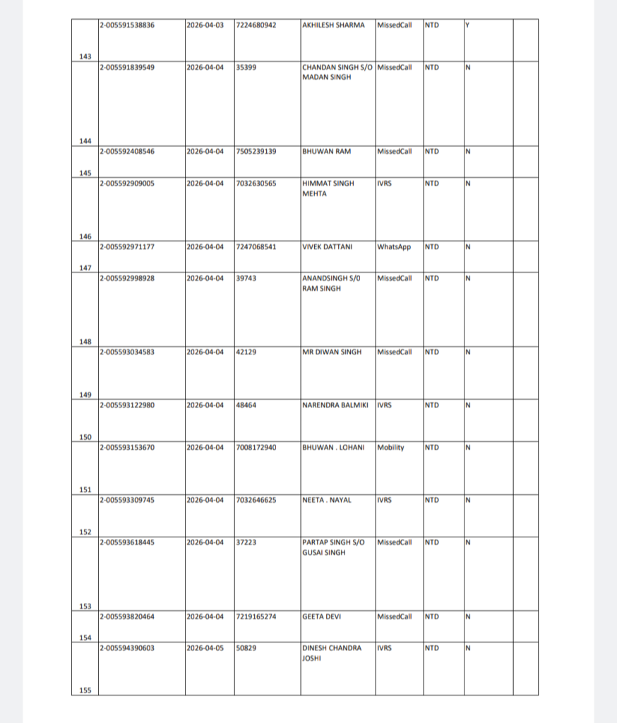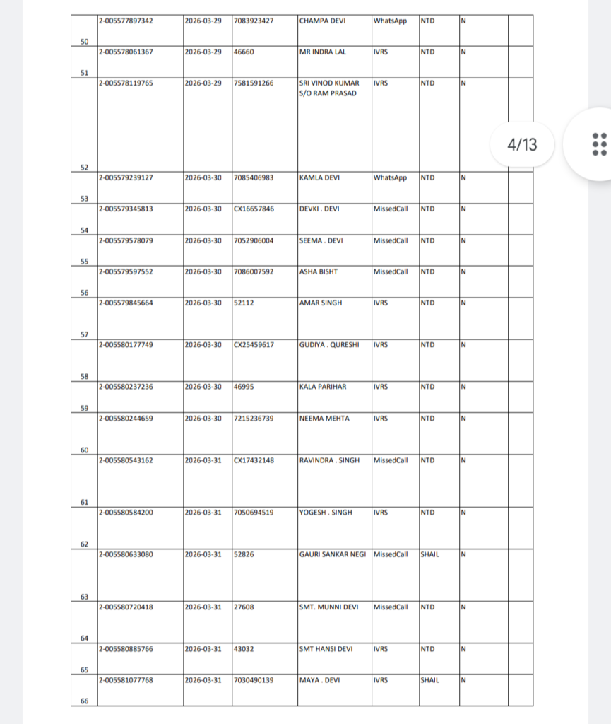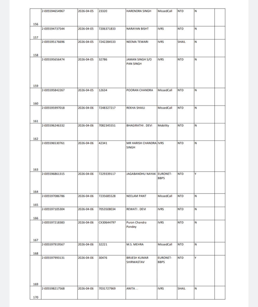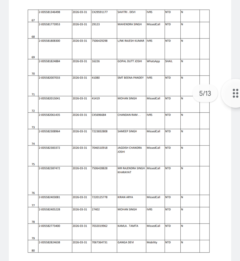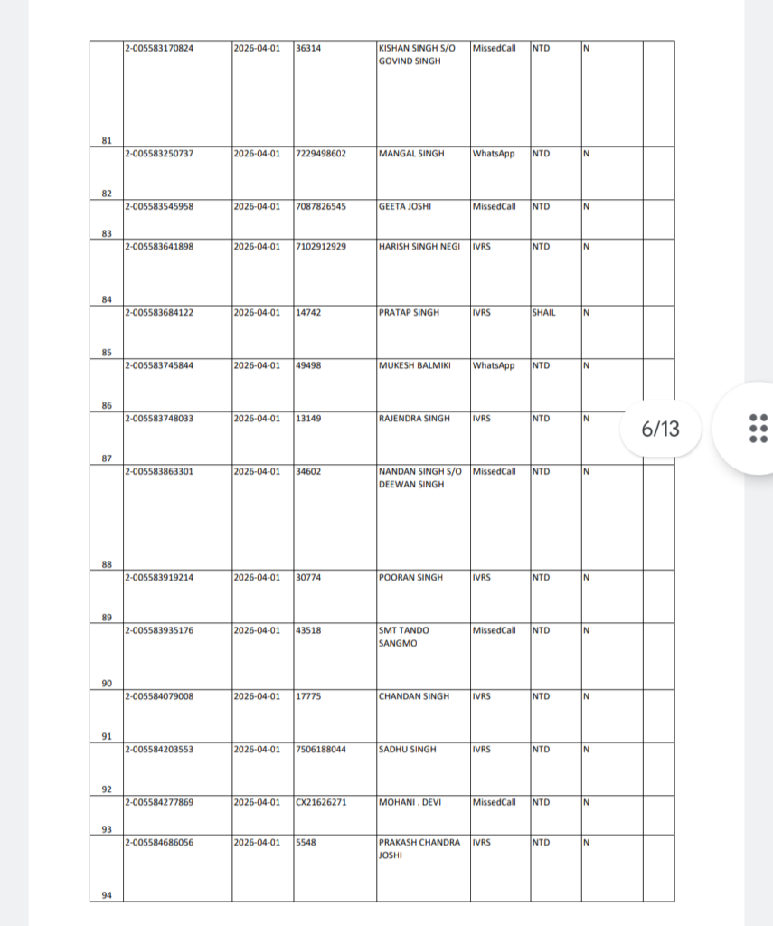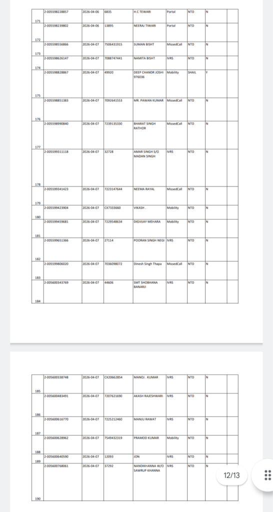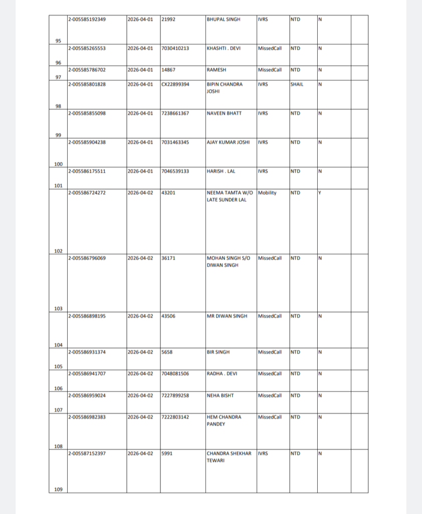 अल्मोड़ा बृहस्पतिवार 16 अप्रैल 2026 को शैल NTD क्षेत्र में गैस वितरण को लेकर संबंधित विभाग द्वारा सूची जारी कर दी गई है।
