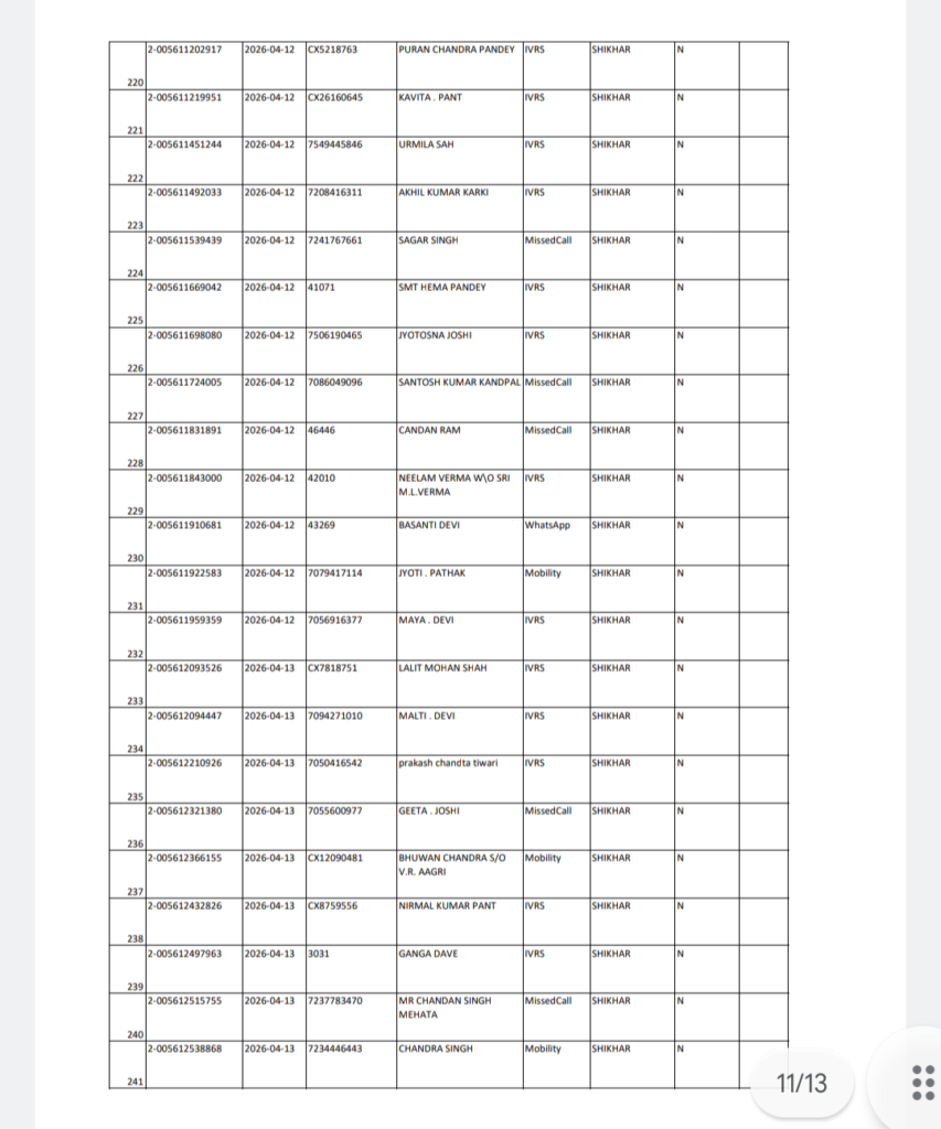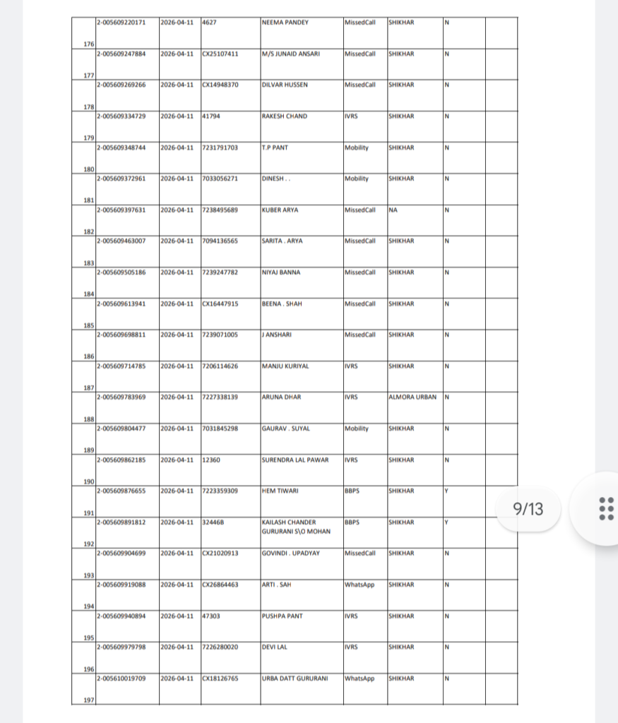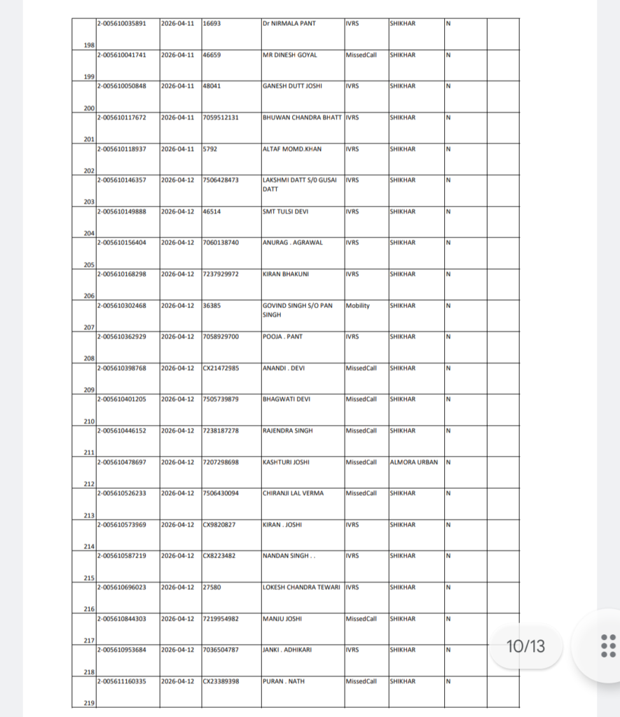 अल्मोड़ा रविवार 19/04/2026 को शिखर क्षेत्र से होने वाली गैस वितरण की सूची जारी कर दी गई है।