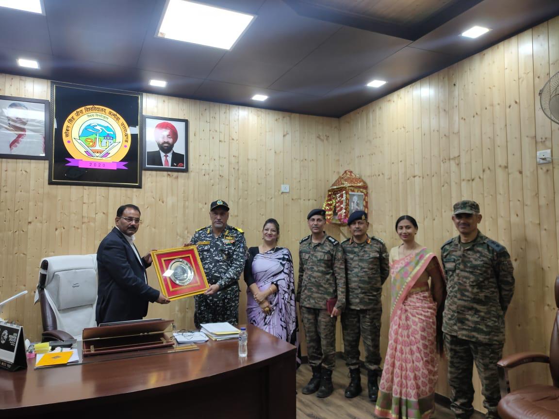 अल्मोडा : ग्रुप कमांडर कमोडोर बी. आर. सिंह, उनकी धर्मपत्नी तारदीप कौर, 24 यू.के. बालिका वाहिनी एन.सी.सी. के कमांडिंग आफिसर एम.के. कांडपाल, 77 यू.के. बटालियन के कमांडिंग ऑफिसर लेफ्टीनेंट कर्नल नंदाबल्लभ, ग्रुप मुख्यालय के एडम आफिसर लै. कर्नल आर. पंवार , एसोसिएट एन सी सी आफिसर लैफ्टिनैंट (डॉ.) ममता पंत आदि ने कुलपति प्रो. सतपाल सिंह बिष्ट से मुलाकात की , अधिकारियों के बीच NCC की गतिविधियों और उसे आधार पाठ्यक्रम के रूप में स्थापित करने हेतु व्यापक वार्ता हुई।
