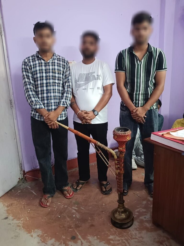 इसी क्रम में वरिष्ठ उप निरीक्षक दीपक बिष्ट, थाना मल्लीताल द्वारा चैकिंग के दौरान डी.एस.ए. ग्राउंड नैनीताल में खुलेआम हुक्का पीकर सार्वजनिक स्थान की गरिमा को ठेस पहुंचा रहे 03 युवकों 1. हर्षवर्धन निवासी हरियाणा 2. मोनू निवासी हरियाणा 3. यश तंवर निवासी हरियाणा को रंगे हाथों पकड़ा गया। तत्काल मौके पर कार्यवाही करते हुए तीनों युवकों को हिरासत में लिया गया एवं उत्तराखंड पुलिस अधिनियम के अंतर्गत चालानी कार्यवाही की गयी। युवकों द्वारा माफी मांगी गई।