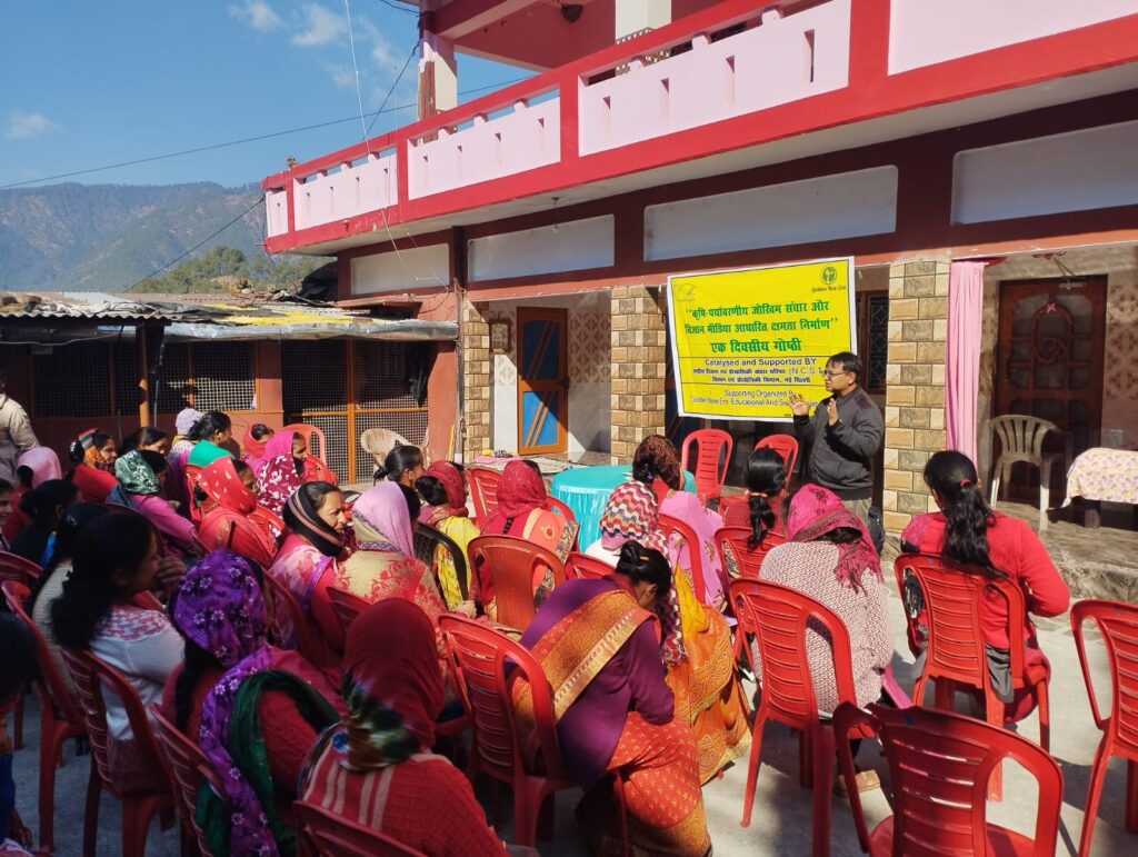 गोल्डन न्यू ऐरा एजूकेशनल एवं सोसियल सोसाइटी द्वारा संचालित व राष्ट्रीय विज्ञान एवं संचार परिषद द्धारा वित्तपोषित परियोजना में अल्मोड़ा जनपद के ताकुला ब्लाक में स्थानीय गांव की महिलाओं, शिक्षकों, युवाओं एवं किसानों को कृषि पर्यावणीय जोखिम पर वैज्ञानिक साक्षरता क्षमता निर्माण पर एक दिवसीय गोष्ठि का आयोजन किया गया, जिसमें जोखिम प्रधंधन के धटक, पर्यावरणीय जोखिमों एवं प्रबंधन पर जानकारीयों के अवगत कराया गया। संदर्भ व्यक्ति विवेकानन्द पर्वतीय कृषि अनुसंधान के के.वी.के. काफलीगैर के वैज्ञानिक डाॅ हरीश चन्द्र जोशी द्वारा पर्वतीय क्षेत्र में कीट प्रबंधन, प्राकृतिक खेती मृदा स्वास्थ्य का महत्व इत्यादि विषय पर वैज्ञानिक उपायों के लिए परीक्षण एवं प्रबंधन मिटटी में पाये जाने वाले सुक्ष्म जीव एवं पारम्परिक खेती से अपनी मिटटी को किस प्रकार से बेहतर किया जाए इत्यादि विषयों में विस्तारपूर्वक जानकारीयों से अवगत करवाया गया एंव उपस्थित स्थानीय गांवों के सदस्यों के प्रश्नो का सामाधान किया गया, जिसमें काण्डे, अमखोली, ताकुला, खाड़ी, जाखसेाड़ा, डोटीयालगांव, लोहना एवं बीना गांव के महिलाओं किसानों ने प्रतिभाग किया। उपस्थित सहभीयेा के नाम हरीश काण्डपाल, तारा दत्त, संजय सिंह, पूजा, गीता लोहनी हेमा उप्रेती, अंजू, मेहता पूनम नेगी आदि उपस्थित थे।