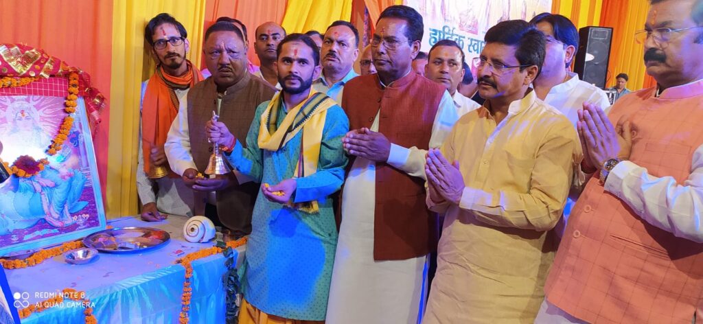 अल्मोड़ा -21 सितंबर, 2023 ऐतिहासिक एवं पौराणिक मां नंदा देवी मेला-2023 अल्मोड़ा के प्रथम दिवस 20 सितंबर, 2023 बुधवार रात्रि लगभग 8:00 बजे से मेले का दीप प्रज्वलित कर विधिवत शुभारंभ हो गया है।मेला समिति के मीडिया प्रभारी (मेला) अमरनाथ सिंह नेगी ने बताया कि सायंकाल निर्धारित कार्यक्रम अनुसार चंद वंशज के युवराज नरेंद्र चंद सिंह वह उनके परिवार जनों द्वारा राजपुरोहित एवं मुख्य पुजारी के दिशा -निर्देशों अनुसार मां नंदा देवी की पूजा अर्चना की गई।तदोपरांत देर सायं 8:00 बजे कार्यक्रम के मुख्य अतिथि अल्मोड़ा बारामंडल के मा०विधायक मनोज तिवारी, विशिष्ट अतिथि पूर्व विधानसभा अध्यक्ष/ पूर्व विधायक रघुनाथ सिंह चौहान, पूर्व विधायक कैलाश शर्मा द्वारा मुख्य पुजारी तारा दत्त जोशी, पुजारी प्रमोद पाठक के मंत्रोचारण के साथ संयुक्त रूप से दीप जलाकर मेले का उद्घाटन किया। आरम्भ में शारदा पब्लिक स्कूल के बच्चों ने वंदना से समा बांध दिया