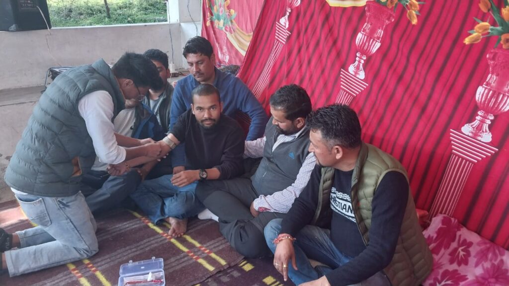 आपदा प्रभावित परिवारों के सदस्यों के साथ आपदा प्रभावित गौरव बजेला(गोकरन) के आमरण अनशन का छटा दिन जारी हैं।