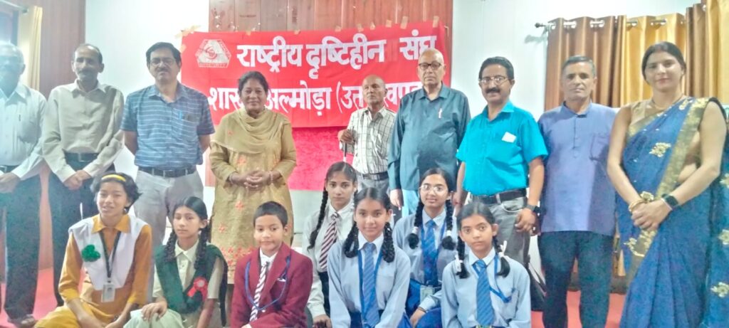 आज दिनांक 28 सितंबर को (राष्ट्रीय दृष्टिहीन संघ अल्मोड़ा) द्वारा पूर्व में (आयोजित भाषण प्रतियोगिता) आगामी 15 अक्टूबर( अंतरराष्ट्रीय सफेद छड़ी दिवस) के अवसर पर (सफेद छड़ी के प्रति समाज को संवेदनशील होना क्यों आवश्यक) विषय पर भाषण प्रतियोगिता का आयोजन किया गया।( अल्मोड़ा म्यूजियम) अल्मोड़ा संग्रहालय के सभागार में यह (भाषण प्रतियोगिता) राष्ट्रीय दृष्टिहीन संघ अल्मोड़ा के द्वारा आयोजित दो वर्गों में सम्पन्न हुई। यह प्रतियोगित (जूनियर एवं सीनियर वर्ग में )आयोजित की गई। जिसमें अल्मोड़ा शहर के विभिन्न स्कूलों के दर्जनों छात्र-छात्राओं ने ( प्रतिभागियों)ने प्रतिभाग किया ।अल्मोड़ा से( मानस पब्लिक स्कूल अल्मोड़ा) के कक्षा 5 के छात्र ( प्रतीक बिष्ट) ने दूसरा स्थान प्राप्त किया। साथ ही लक्षिता जोशी कक्षा 8 ने तीसरा स्थान प्राप्त किया दोनो को सफलता पर सभी ने खुशी व्यक्त कर बधाई दी