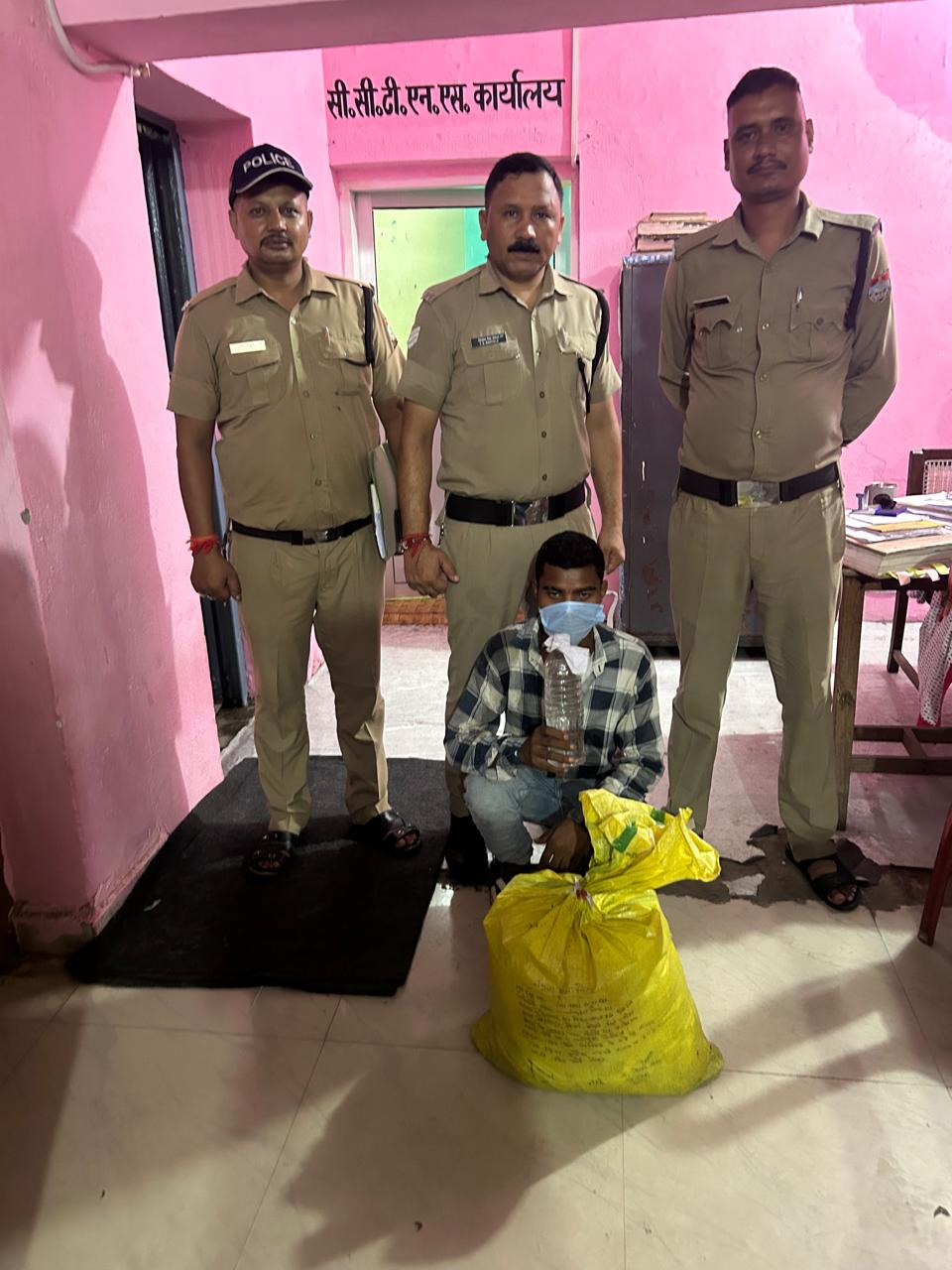 जनतानामा न्यूज़ अल्मोड़ा उत्तराखण्ड वरिष्ठ पुलिस अधीक्षक जनपद नैनीताल प्रहलाद नारायण मीणा द्वारा “ड्रग्स फ्री देवभूमि मिशन-2025” के अंतर्गत युवाओं को नशा मुक्त बनाने के उद्देश्य से जनपद में नशे के विरुद्ध चलाए जा रहे अभियान के अंतर्गत सभी थाना प्रभारी को कड़ी कार्यवाही के निर्देश दिए गए हैं।इसी क्रम में प्रकाश चंद्र एसपी सिटी हल्द्वानी के दिशा निर्देशन, संगीता क्षेत्राधिकारी लालकुआं के पर्यवेक्षण में डी0सी0फर्त्याल प्रभारी निरीक्षक लालकुआं नेतृत्व में थाना लालकुआं पुलिस टीम द्वारा गस्त के दौरान डार्वि ग्राउंड के पास टांडा जंगल से देवधर पुत्र मोहनलाल हाल निवासी वार्ड नंबर 2 लालकुआं नैनीताल को एक कट्टे में 141 पाउच अवैध कच्ची शराब खाम के गिरफ्तार कर उसके विरुद्ध कोतवाली लालकुआं में 60 आबकारी अधिनियम में अभियोग पंजीकृत किया गया.गिरफ्तारी टीम –1- उ0नि0 दीपक बिष्ट