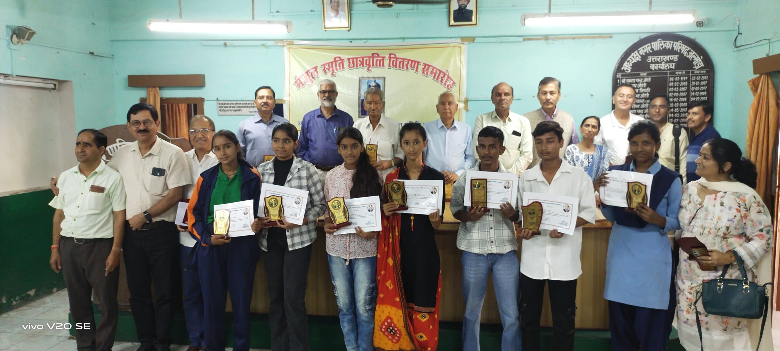 कार्यक्रम में मुख्य अतिथि निर्वतमान पालिकाध्यक्ष प्रकाश जोशी की मौजूदगी में प्रो.सुशील जोशी,डा0 हेमंत कुमार पांडे, प्रधानाचार्य उमेश चन्द्र पांडे,डेकेयर सेंटर के अध्यक्ष हेम जोशी, अमन संस्था के प्रमुख रघु तिवारी,बार एसोसिएशन के अध्यक्ष महेश परिहार, सामाजिक कार्यकर्ता चन्द्रमणी भट्ट,व एआईसी के प्रबंधक सुशील कुमार जोशी ने सभी च​यनित बच्चों को छात्रवृत्ति , प्रतीक चिहृन और प्रमाण पत्र वितरित किये।
