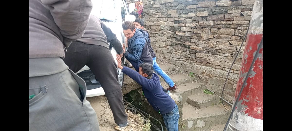 अल्मोड़ा आज दिनांक 4/3/2024 जाखन देवी क्षेत्र में चल रही सीवर लाइन में काफी बड़े-बड़े गड्डे होने एवं कीचड़ होने के कारण कई वाहन सवार चोटिल हो रहे थे जिस क्रम में भी आज भी सुबह एक स्कूटी सवार व्यक्ति पीतांबर होटल के पास चोटिल हो पड़े उसके पश्चात वहां पर एक कार सवार बुजुर्ग की कार भी कीचड़ में फिसल कर रोड से नीचे की तरफ को लटक गई जिसका संज्ञान लेते हुए भाजपा नगर अध्यक्ष साह मोनू मौके पर पहुंचे एवं स्थानीय लोगों के साथ मिलते हुए कार को सुरक्षित रोड पर धकेल कर लाया गया