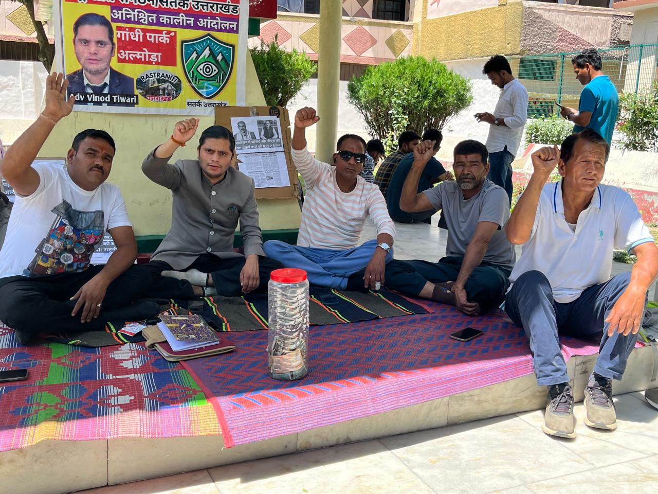 राष्ट्र नीति संगठन के तत्वाधान में और एडवोकेट विनोद चंद्र तिवारी के नेतृत्व में गांधी पार्क अल्मोड़ा में तीन सूत्री मांगों पर चल रहे आंदोलन जो की क्रमशः