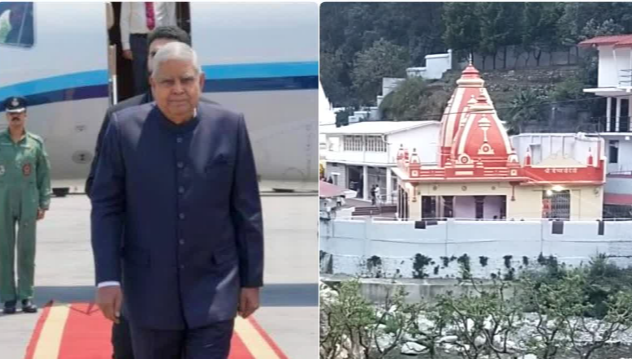 नैनीताल। उपराष्ट्रपति जगदीप धनखड़ ने कड़ी सुरक्षा के बीच आज गुरूवार को कैंची धाम पहुंचकर बाबा नीब करौरी महाराज के दर्शन कर पूजा अर्चना की। स्थानीय युवतियों में मीरा तिवारी और भावना तिवारी ने तिलक चंदन लगाकर स्वागत किया। उपराष्ट्रपति कैंची धाम में एक घंटे तक पूजा अर्चना करेंगे। मंदिर समिति और प्रशासन की ओर से उपराष्ट्रपति को बाबा की मूर्ति देकर स्वागत किया। उपराष्ट्रपति के मंदिर में पूजा अर्चना के कार्यक्रम के दौरान श्रद्धालुओं का आवागमन बंद रखा गया। मंदिर के मुख्य गेट से लेकर आसपास के मकानों की छतों व पहाड़ियों में सुरक्षा कर्मी तैनात किये गए है। उपराष्ट्रपति का काफिला करीब साढ़े दस बजे मंदिर गेट पर पहुंचा। जिलाधिकारी वंदना, एसएसपी पीएन मीणा ने उपराष्ट्रपति का स्वागत किया। इस दौरान कमिश्नर दीपक रावत, डीआईजी योगेंद्र रावत सहित पुलिस व प्रशासनिक अधिकारी मंदिर परिसर में जमे रहे। गुरुवार सुबह नौ बजे से ही आम भक्तों के लिए धाम में प्रवेश रोक दिया गया था। उपराष्ट्रपति ने हनुमान मंदिर में पूजा अर्चना की। बाबा नीब करौरी के तपस्या स्थल पर नमन किया। मंदिर ट्रस्ट पदाधिकारियों के साथ बात की। दर्शन व पूजा अर्चना के बाद उपराष्ट्रपति का काफिला हल्द्वानी के लिए रवाना हो गया। उपराष्ट्रपति के कार्यक्रम के दौरान जगह-जगह रोके गये वाहनों के कारण यात्रियों को भारी परेशानी का सामना करना पड़ा।
