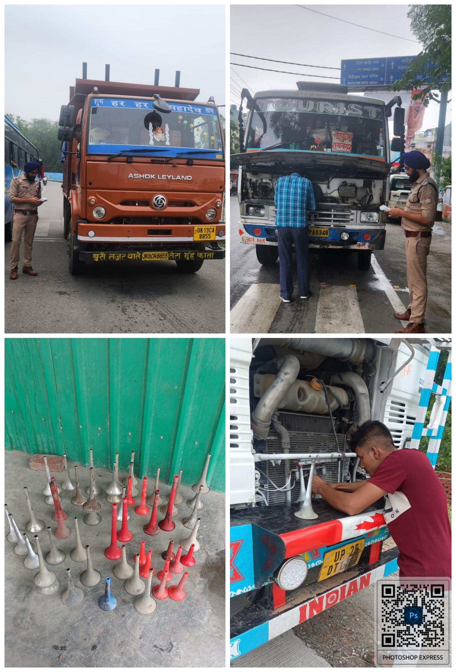 जिस आदेश के क्रम में जनपद के थानों द्वारा 23 वाहनों के रेट्रो सिलेंसर तथा 48 वाहनों के प्रेशर हॉर्न निकाले गए। इस प्रकार के वाहनों के कुल 71 चालान किए गए जिनका संयोजन शुल्क 72,000 रुपए जुर्माना किया गया।