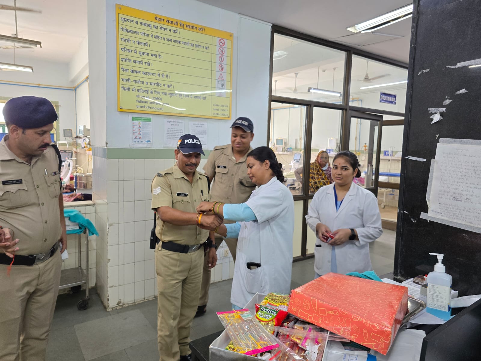 आज पूरे देश में बहन-भाई के अटूट प्रेम, स्नेह व विश्वास का प्रतीक पावन पर्व रक्षाबंधन मनाया जा रहा है। जिसके सकुशल आयोजन के लिए प्रह्लाद नारायण मीणा, एसएसपी नैनीताल द्वारा जिलेभर में भारी मात्रा में पुलिस कर्मियो को तैनात कर सुदृढ़ सुरक्षा व्यवस्था के पुख्ता इंतजाम किए गए हैं। सभी अधिकारियों/कर्मियों द्वारा हर स्तर पर सतर्कता बरती जा रही है। आज रक्षाबंधन के पावन पर्व को मनाने नैनीताल पुलिस के एसपी सिटी हल्द्वानी प्रकाश चंद्र तथा सीओ हल्द्वानी नितिन लोहनी पुलिस बल समेत हल्द्वानी के डॉ सुशीला तिवारी अस्पताल पहुंचे। वहां सभी पुलिस कर्मियों ने अस्पताल में ड्यूटी पर तैनात डॉक्टर तथा नर्सों को रक्षाबंधन की बधाई दी।