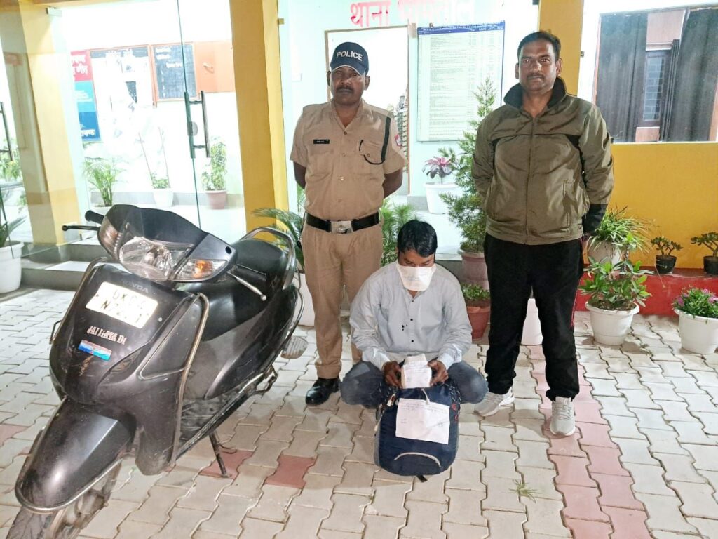 प्रभारी निरीक्षक डी0आर0 वर्मा के नेतृत्व वर्मा में भानदेव नावाड़ हल्दुचौड़ लालकुआं क्षेत्रान्तर्गत गश्त के दौरान तेल डिपो चौराहे से ग्राम भानदेव नवाड़ के जंगल लालकुआं से गुरमीत सिंह पुत्र मंगल सिंह निवासी-ग्राम बिंदुखेड़ा थाना रुद्रपुर जनपद उधम सिंह नगर को एक प्लास्टिक के कट्टे में 60 पाउच अवैध कच्ची शराब के गिरफ्तार कर उसके विरुद्ध कोतवाली लालकुआं में 60 आबकारी अधिनियम में अभियोग पंजिकृत किया गया।