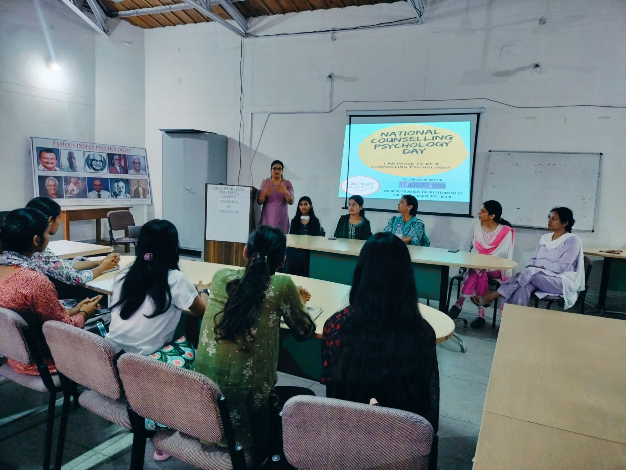 मनोविज्ञान विभाग,सोबन सिंह जीना विश्वविद्यालय अल्मोड़ा में राष्ट्रीय मनोवैज्ञानिक परामर्श दिवस का आयोजन किया गया। मनोविज्ञान विभाग की विभागाध्यक्ष प्रो0 मधुलता नयाल ने कहा कि वर्तमान आपाधापी के युग में जीवन के प्रत्येक क्षेत्र में परामर्श की आवश्यकता होती है। मानसिक स्वास्थ्य से जुड़े मुद्दों को सामान्य रूप से स्वीकार्यता दिलाने और लोगों में जागरूकता बढ़ाने के उद्देश्य से 17 अगस्त 2021 से परामर्श दिवस मनाया जा रहा है।