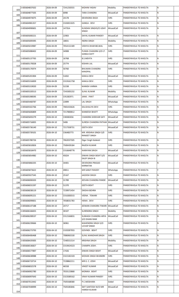 शुक्रवार 17 अप्रैल 2026 को पाण्डेखोला क्षेत्र में गैस वितरण किया जाएगा। इस संबंध में संबंधित अधिकारियों द्वारा स्पष्ट निर्देश जारी किए गए हैं कि केवल उन्हीं उपभोक्ताओं को गैस सिलेंडर दिया जाएगा, जिनका नाम जारी की गई सूची में शामिल होगा।