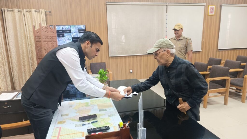 देहरादून दिनांक 15 अक्टूबर 2024 जिलाधिकारी सविन बंसल ने आज  प्रतिदिन की भांति अपने कार्यालय कक्ष में जनता दर्शन कार्यक्रम के दौरान जनमानस की समस्याओं को सुना। विलासपुर कांडली पूर्व सैनिक संगठन ने अपनी शिकायत में बताया कि ग्राम विलासपुर कांड़ली में ग्राम समाज की लगभग 40 बीघा भूमि पर भू-माफियाओं द्वारा कब्जा किया जा रहा है, उन्होंने जिलाधिकारी से  कार्यवाही की मांग की जिस पर डीएम ने उपजिलाधिकारी सदर को  कार्यवाही के निर्देश दिए।