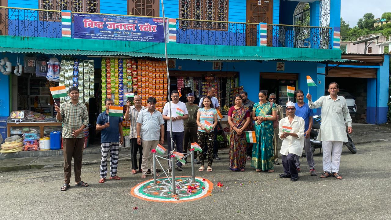 अल्मोड़ा आज स्वतंत्रता दिवस पर चम्पानगर बाजार के व्यापारीयों ने तिरंगा फहराकर, शहीदों को नमन किया। साथ ही भारत माता की जय के नारे लगाएं। इस मौके पर वीरों की याद में पुष्प अर्पित कर अमर रहे के नारो से स्याल्दे घाटी गुंजायमान हुई। इसके साथ मिष्ठान वितरित कर सभी ने एक दूसरे को बधाई देते हुए स्वतंत्रता दिवस की खुशी मनाई। चम्पानगर के वरिष्ठ व्यापारी हरीश विष्ट, देवभूमि उद्योग व्यापार मंडल अध्यक्ष स्याल्दे दर्शन जोशी, ध्यान सिंह बिष्ट , चन्दन रजवार, प्रकाश सिंह बिष्ट , नन्दन सिंह रावत, प्रमोद जोशी, वीरेंद्र बिष्ट, भगवत सिंह बिष्ट, कृपाल दत्त , मनोज सिंह, बबीता, अशोक कुमार , काकू, मात्रे प्रसाद आदि लोग मौजूद रहें।